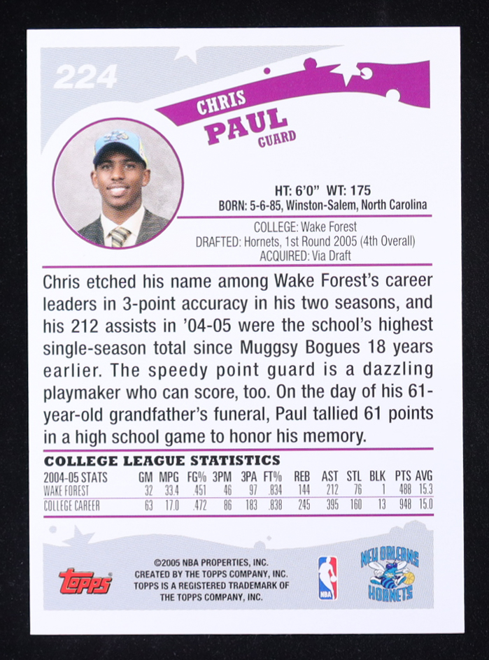 Chris Paul 2005-06 Topps #224 RC