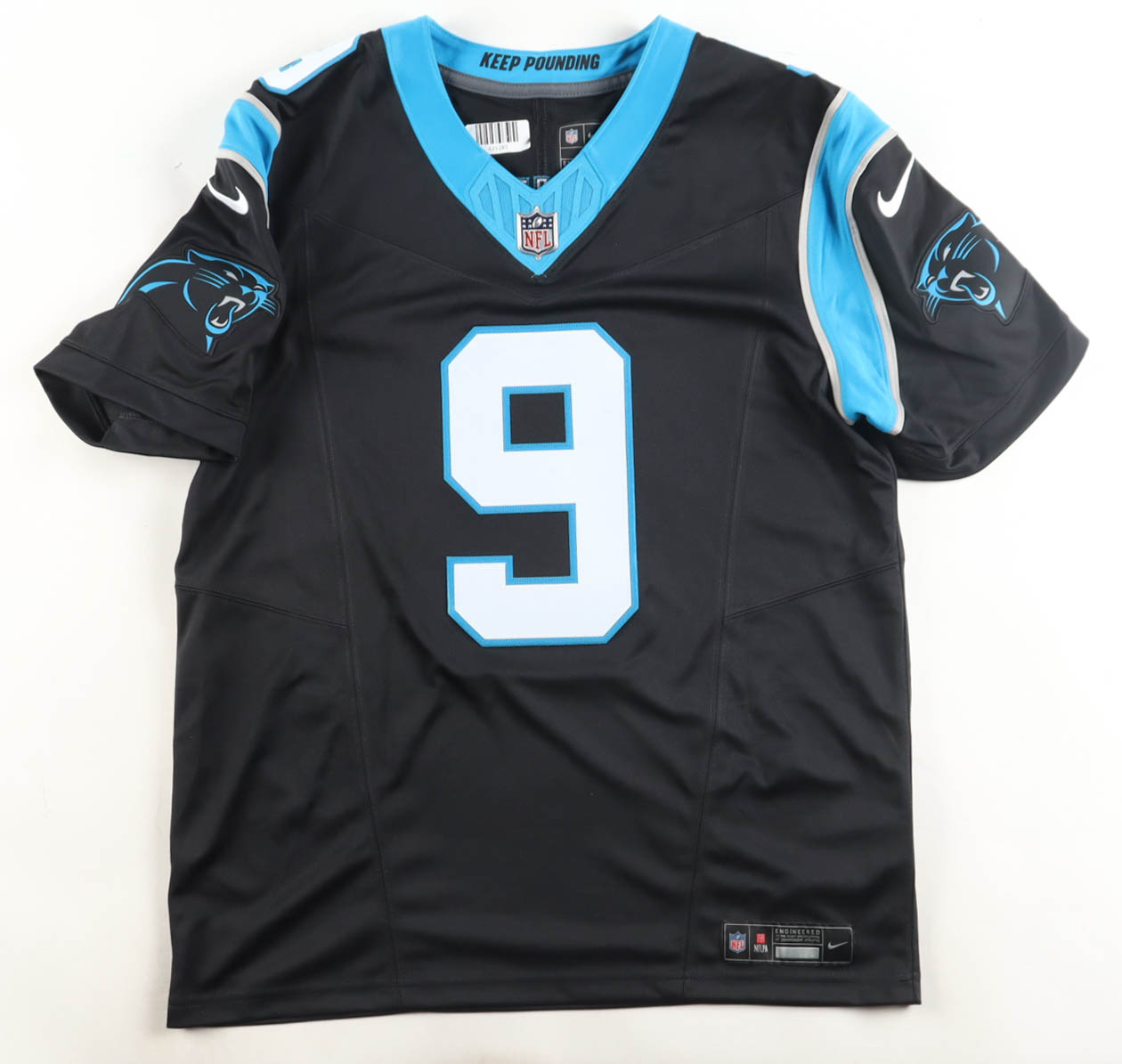 Nike jersey with everything sewn on, size L. Hand-signed by Bryce Young (Carolina Panthers).