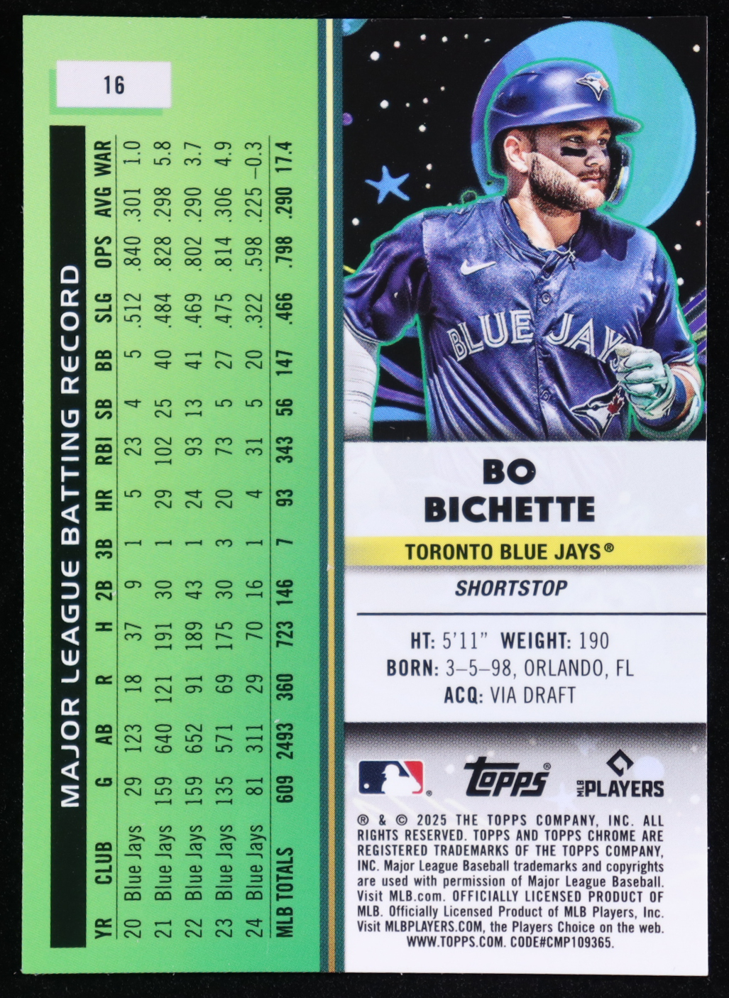 Bo Bichette 2025 Topps Cosmic Chrome Aqua Equinox Refractors #16 #167/199