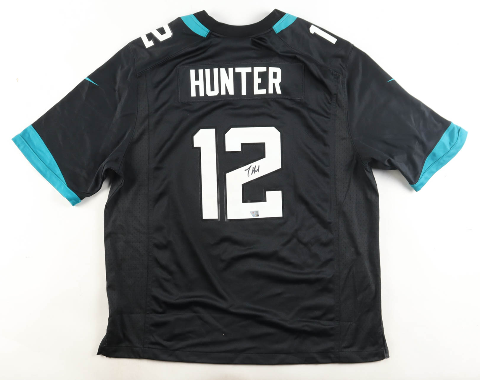 Nike jersey with everything pressed on, size XXL. Has been hand-signed by Travis Hunter (Jacksonville Jaguars).