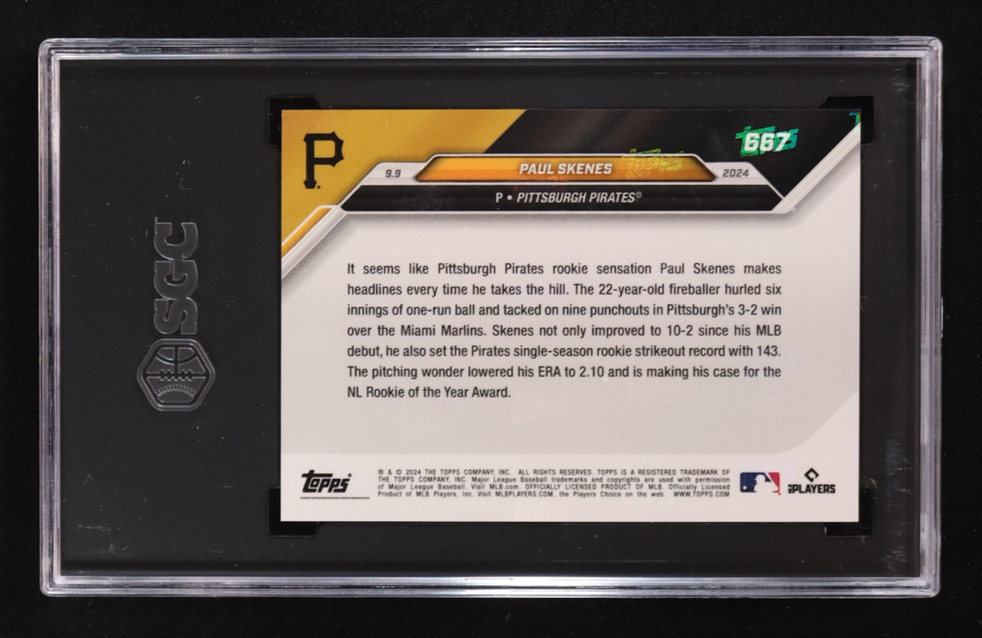 Paul Skenes 2024 Topps Now #667 RC (SGC 9.5)