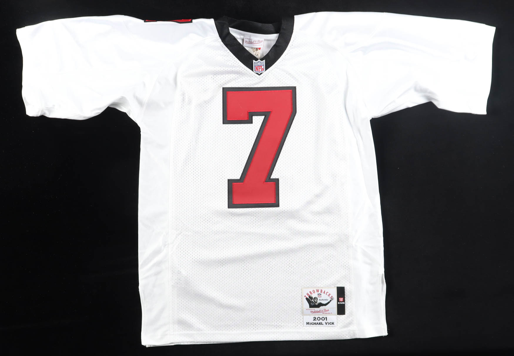 2001 Mitchell & Ness jersey with everything sewn on, size 44 (L). Hand-signed by Michael Vick (Atlanta Falcons).