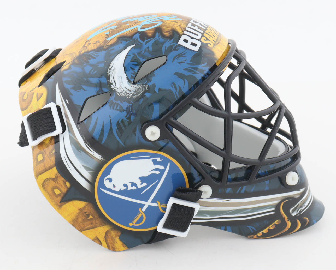 Franklin NHL Buffalo Sabres mini goalie mask helmet. Hand-signed by Dominik Hašek (HOF).