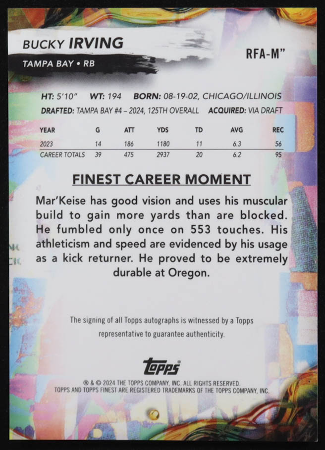 Bucky Irving 2024 Finest Rookie Autographs #RFAM" RC