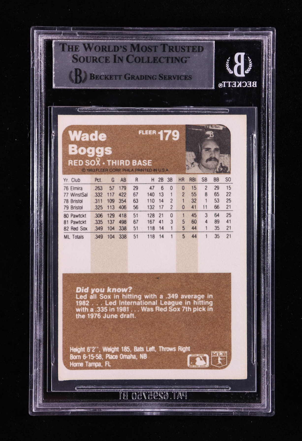 Wade Boggs Signed 1983 Fleer #179 RC (BGS)