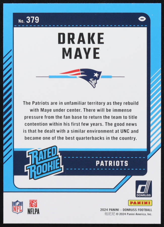 Drake Maye 2024 Donruss #379 RR RC