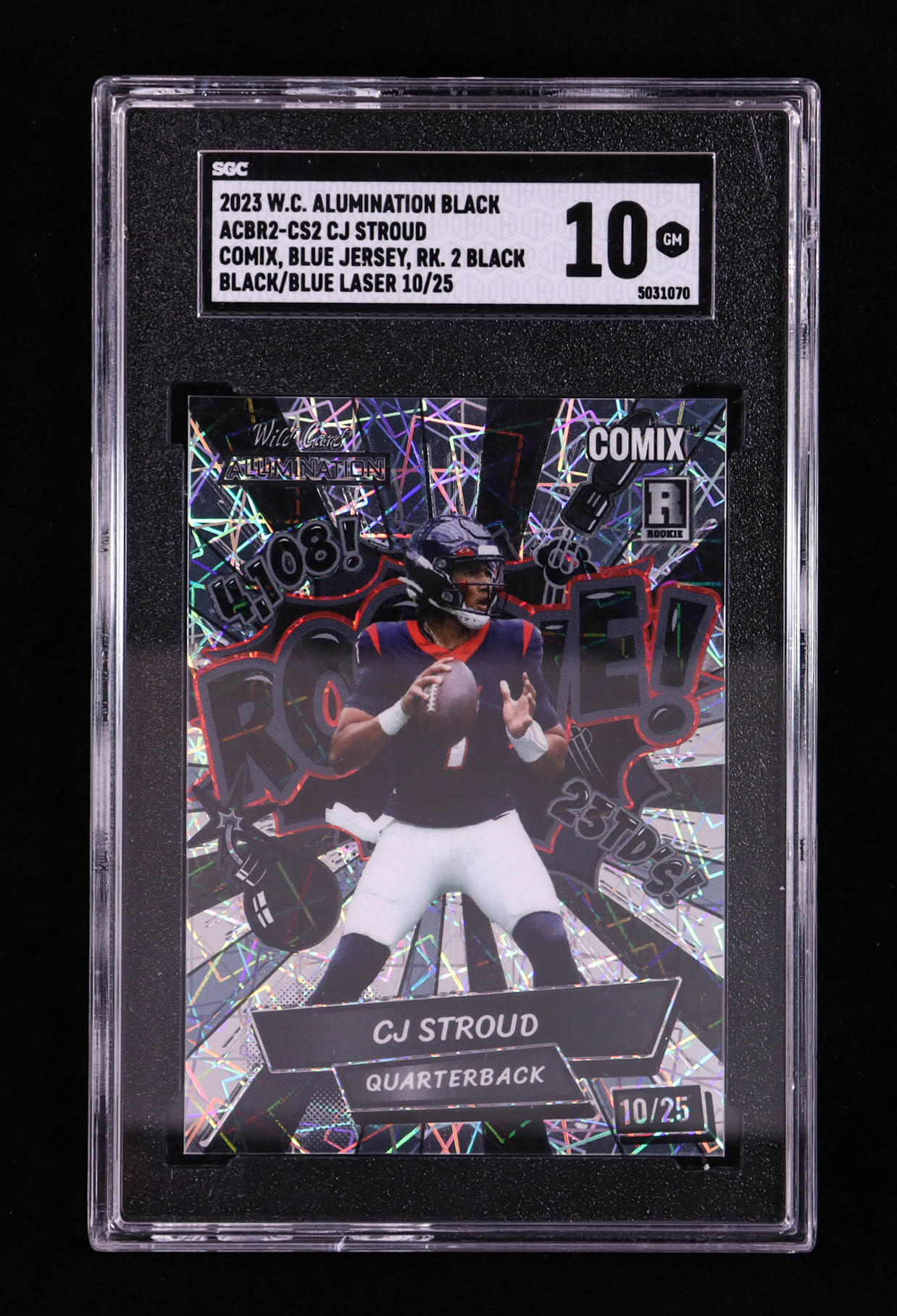 CJ Stroud 2023 Wild Card Alumination Comix Blue Jersey Black/Blue Laser #ACBR2-CS2 RC #10/25 (SGC 10)