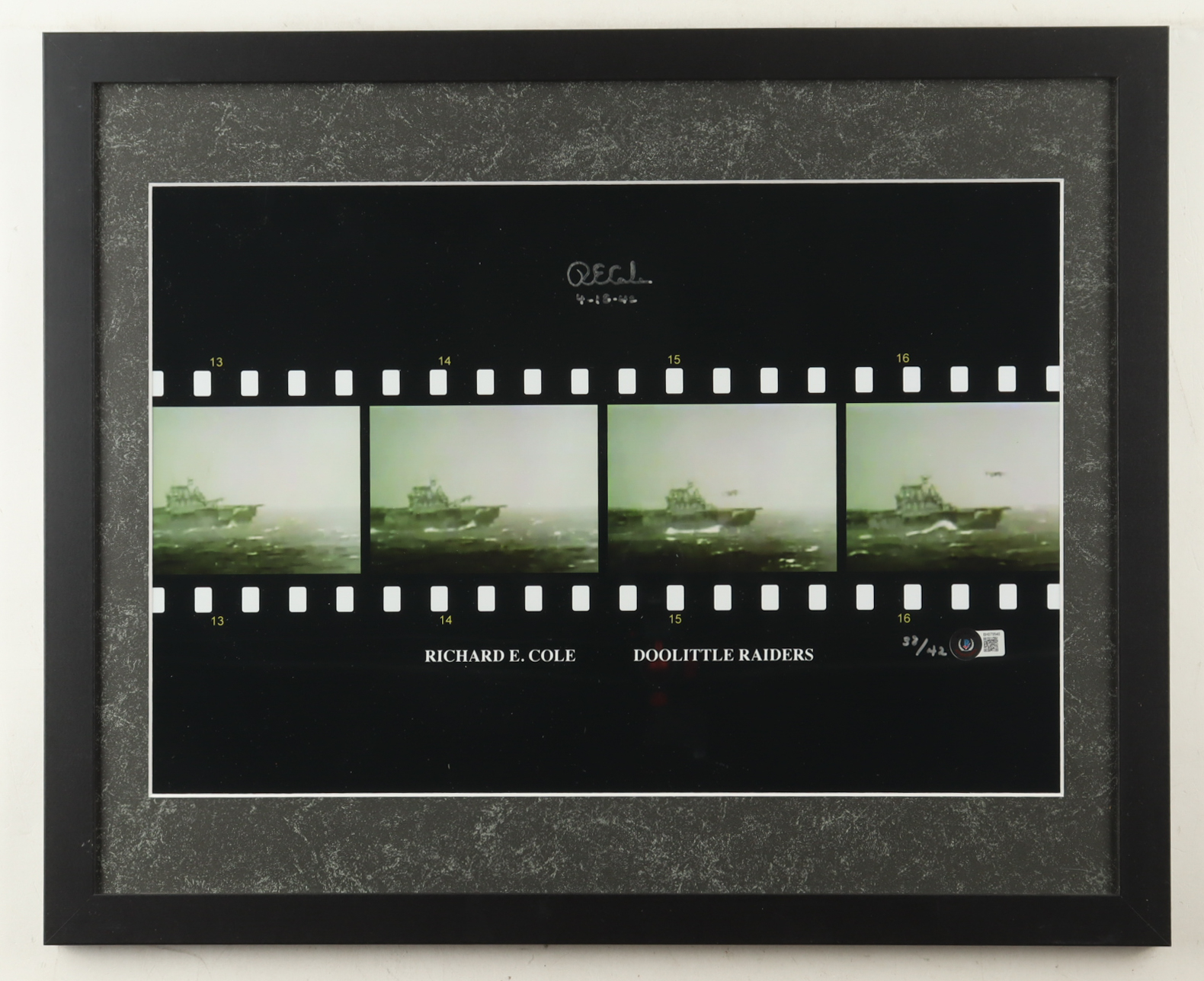 Richard E. Cole Signed WWII Custom Framed Photo Inscribed "4-18-42" (Beckett)