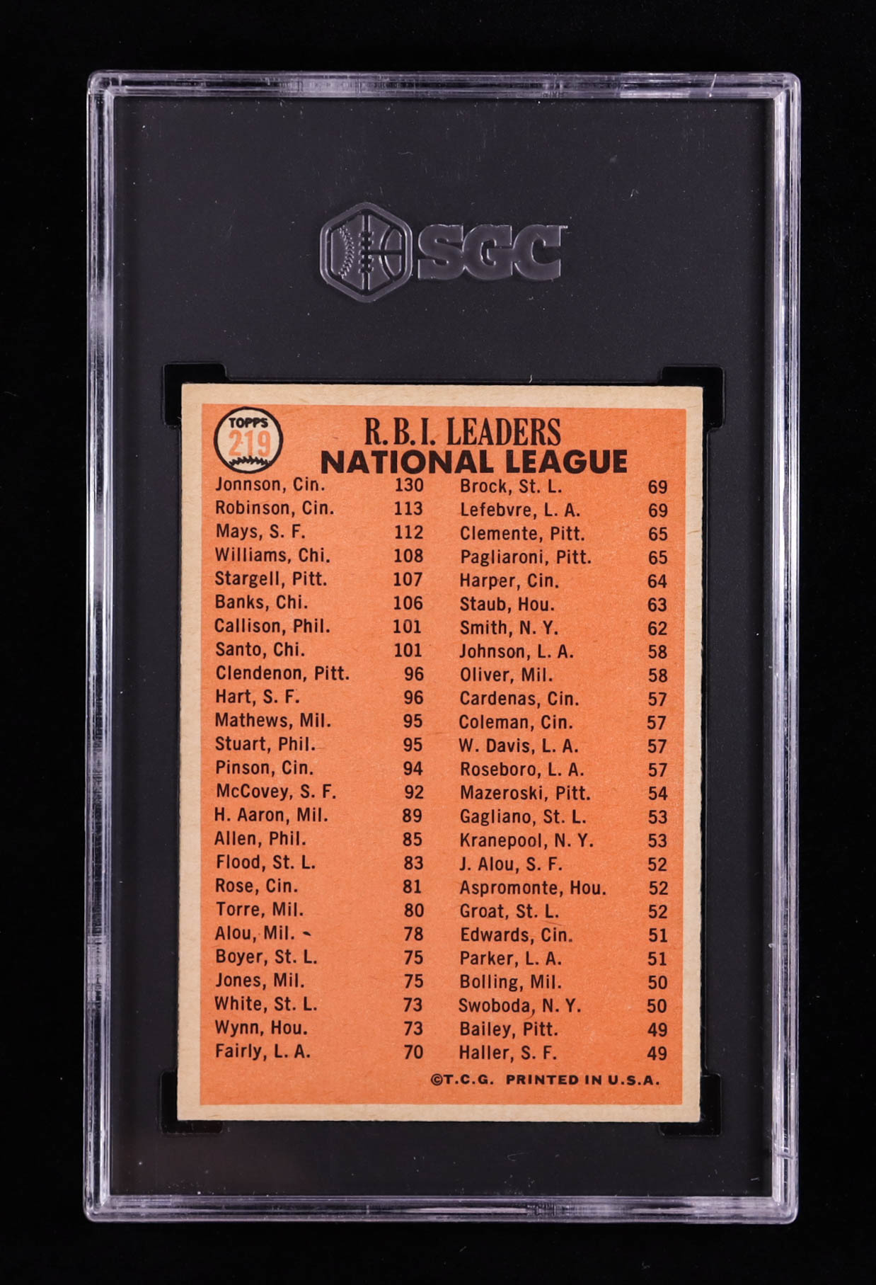 Deron Johnson / Frank Robinson / Willie Mays 1966 Topps N.L. RBI Leaders #219 (SGC 6)
