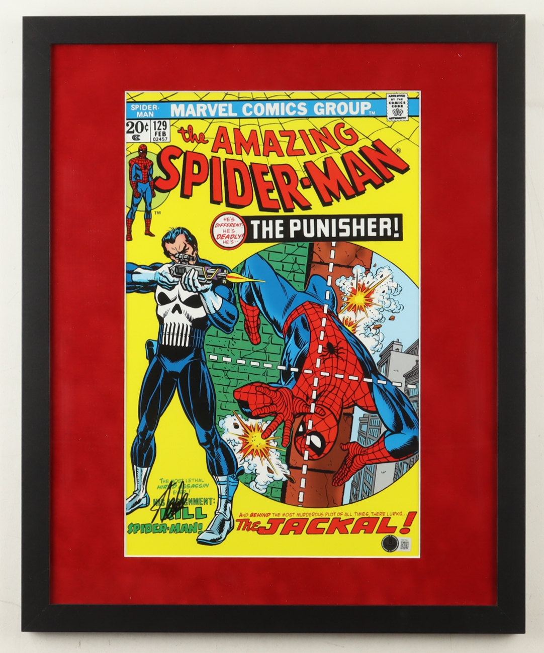 Custom frame measures 17.5" x 21.5" in size. Features a poster that has been hand-signed by Stan Lee (D. 2018).