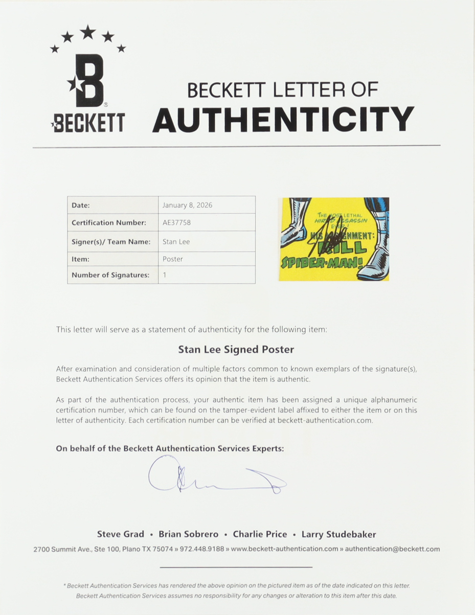 Stan Lee Signed Custom Framed "The Amazing-Spider Man" Poster (Beckett)