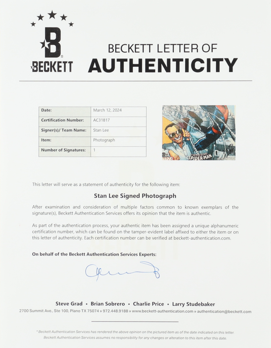 The autograph includes an official Beckett Authentication Services hologram and matching LOA for authenticity purposes.