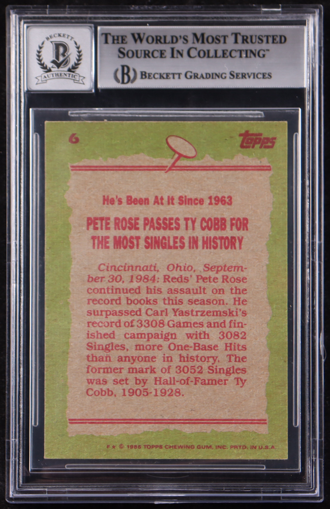 Pete Rose Signed 1985 Topps #6 RB (BGS Authentic | Autograph Graded BGS 10)