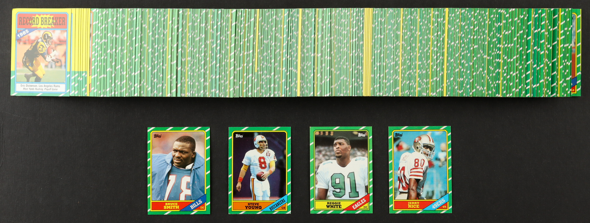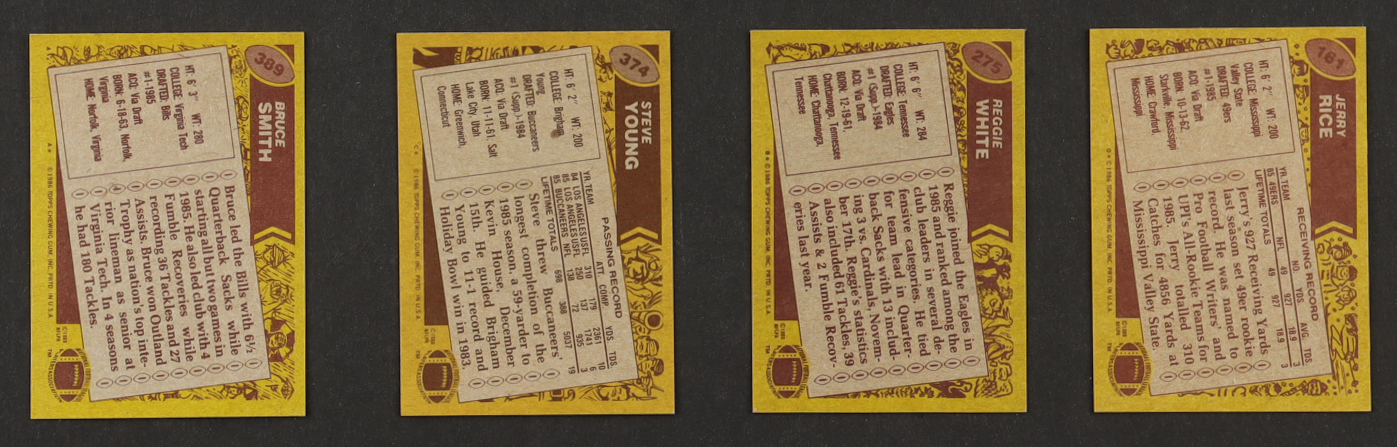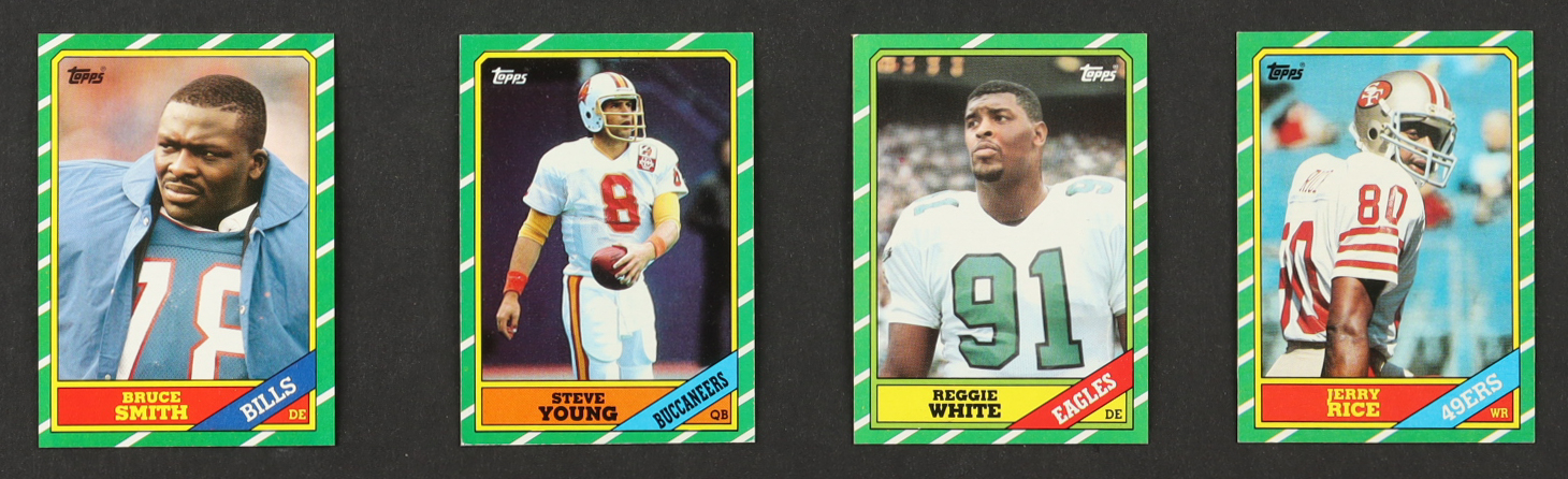 1986 Topps Football Complete Set of (396) Cards with Jerry Rice #161 RC, Steve Young #374 RC, Reggie White #275 RC, Bruce Smith #389 RC