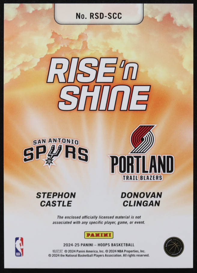 Donovan Clingan / Stephon Castle 2024-25 Hoops Rise N Shine Dual Memorabilia #3 RC