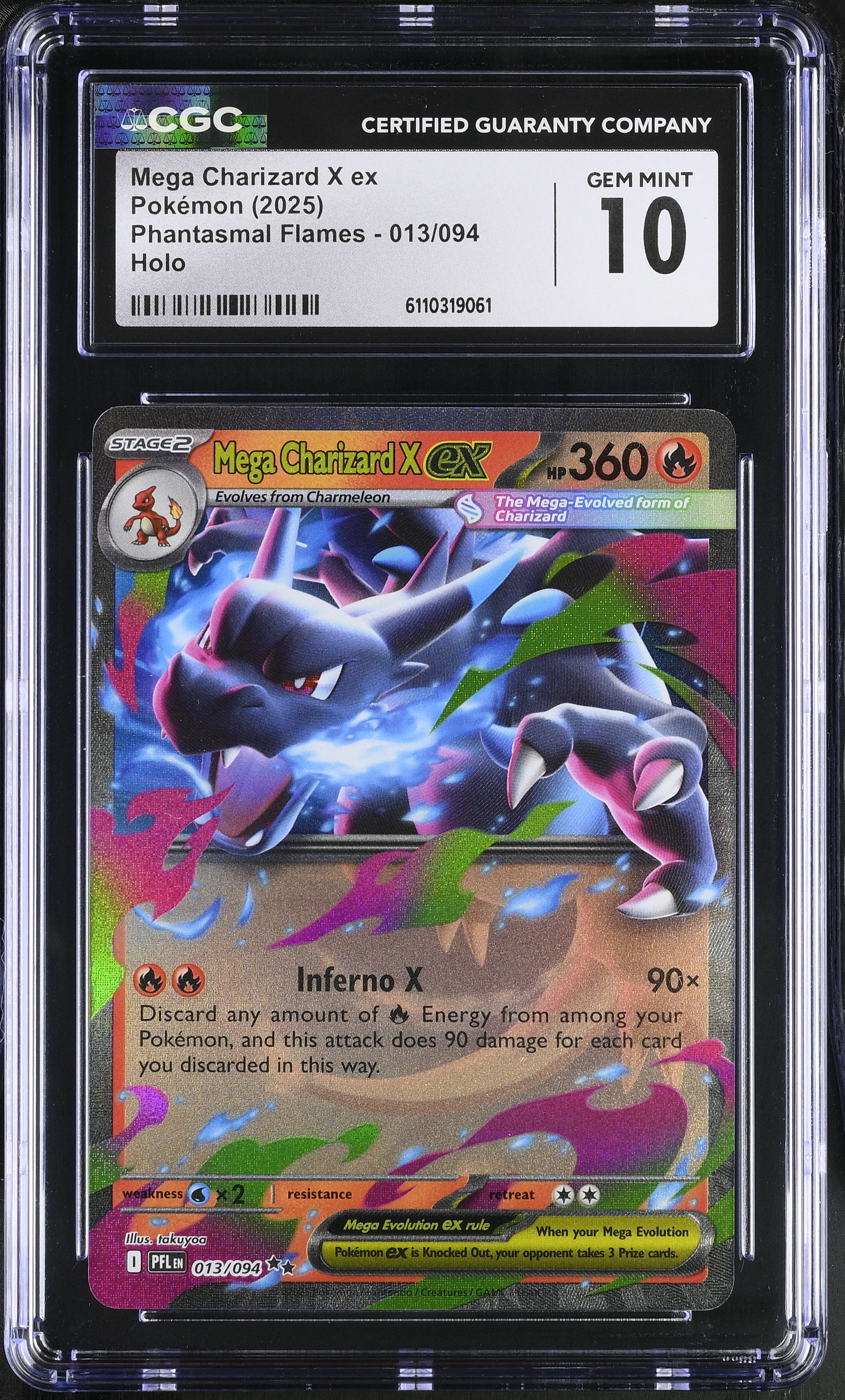 Mega Charizard X Ex 2025 Pokemon TCG Mega Evolution Phantasmal Flames #013 (CGC 10)