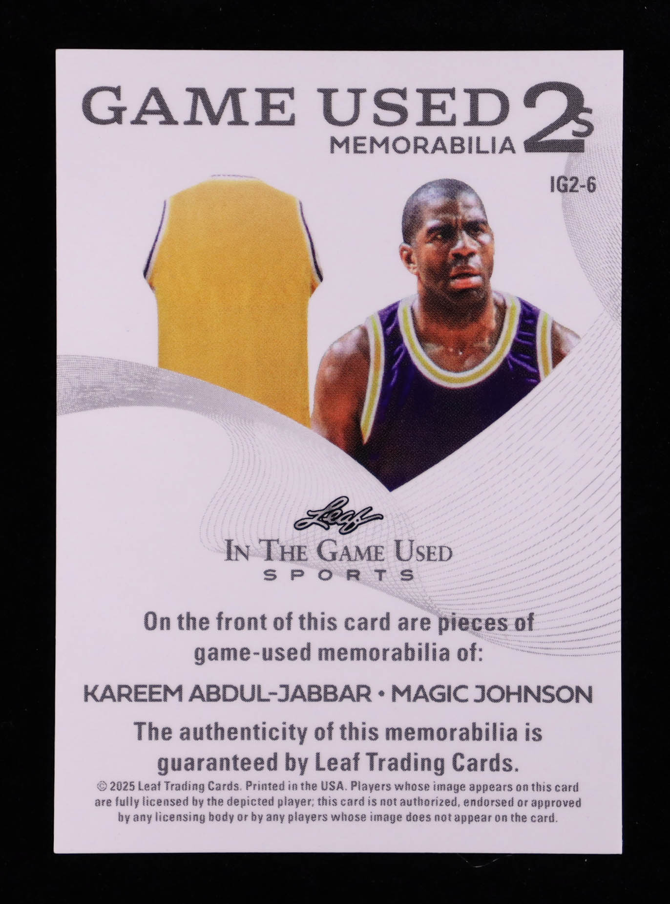 Kareem Abdul-Jabbar / Magic Johnson 2025 Leaf ITG Used Sports Game Used 2s Dual Memorabilia Prismatic Purple #IG26 #5/6