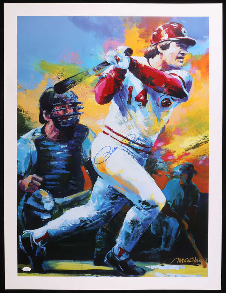 Lithograph measures approximately 25" x 33" in size and has been hand-signed by Pete Rose (D. 2024, Cincinnati Reds). Please note, the artist's signature is a facsimile.