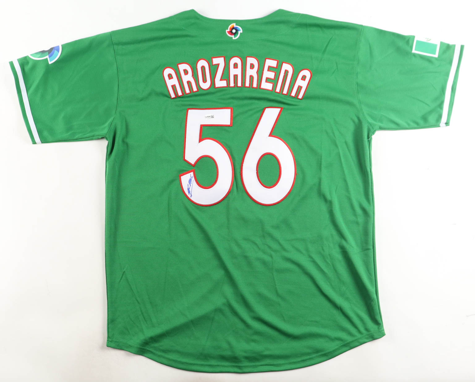 Custom jersey with everything sewn on, size XL. Hand-signed by Randy Arozarena.