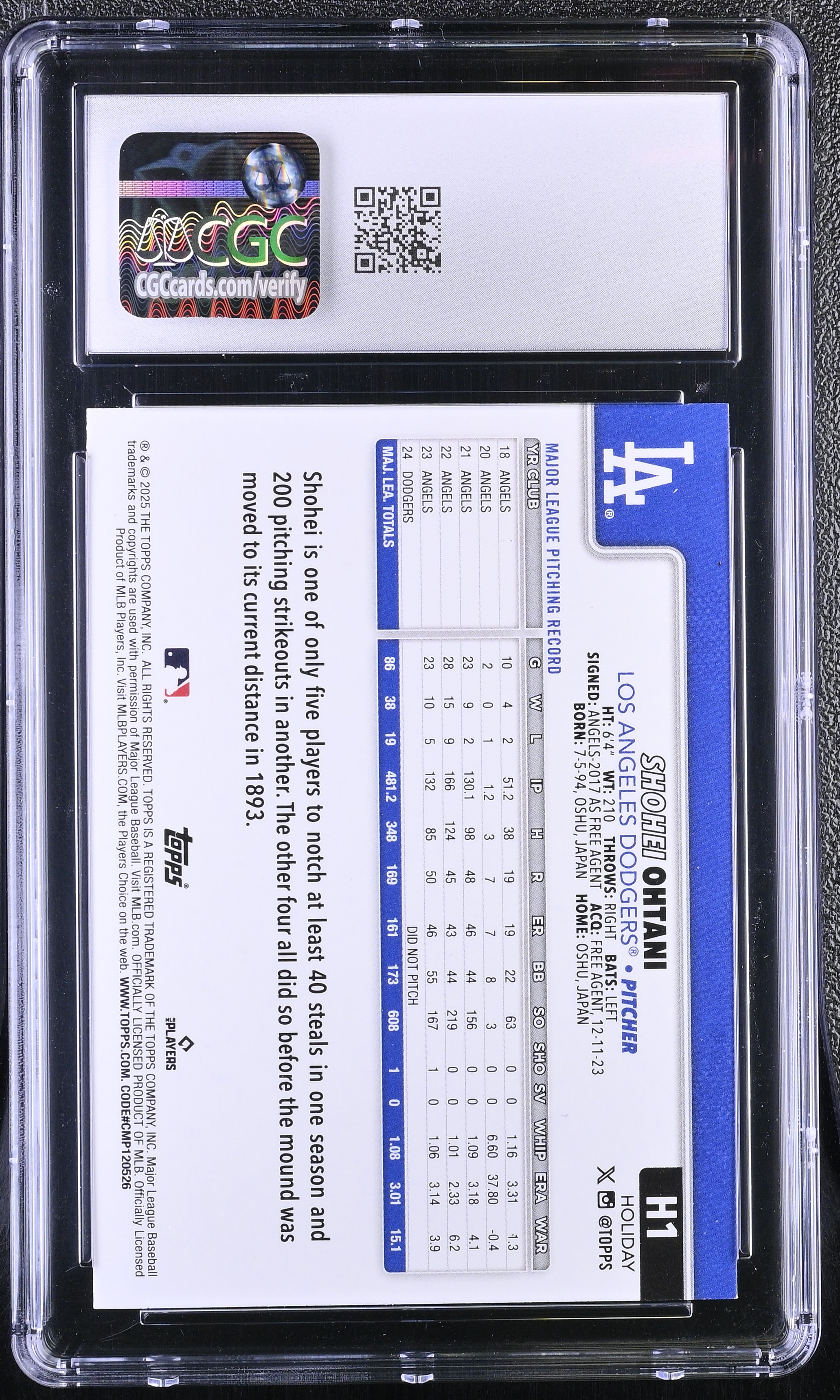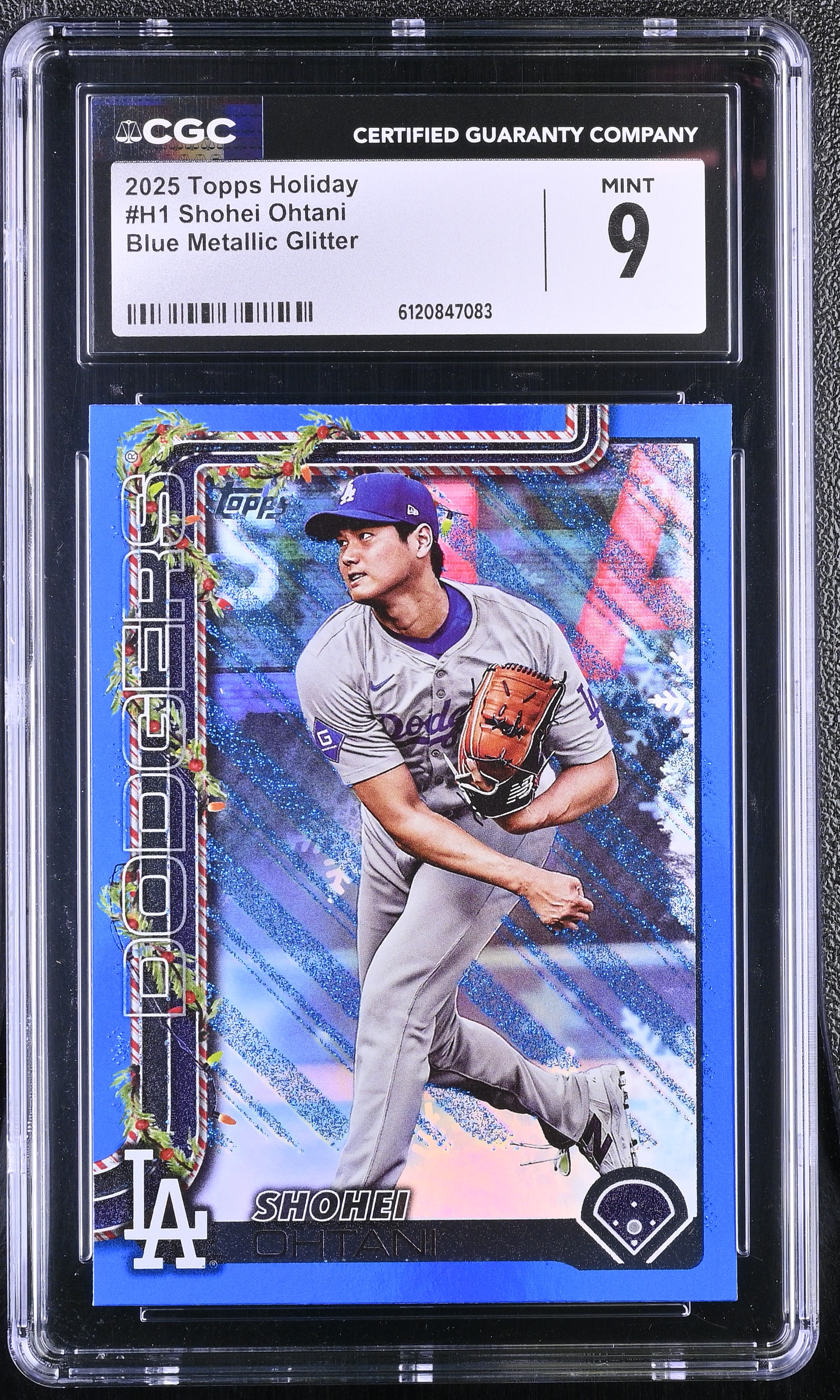 Shohei Ohtani 2025 Topps Holiday Blue Metallic Glitter #H1 (CGC 9)