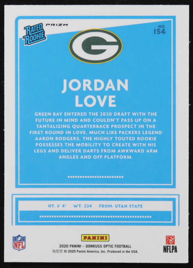 Jordan Love 2020 Donruss Optic Green Velocity #154 RC