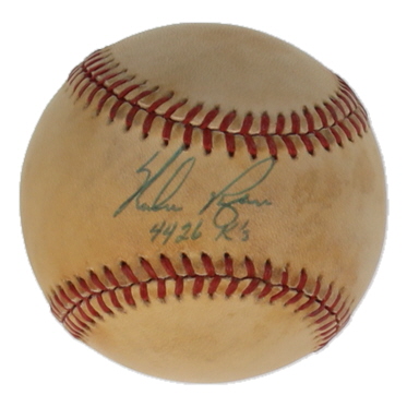 Rawlings Official National League baseball. Has been hand-signed by Nolan Ryan (Texas Rangers, HOF). Please see photos for more details regarding the condition of the item as the ball shows natural signs of toning and fading.