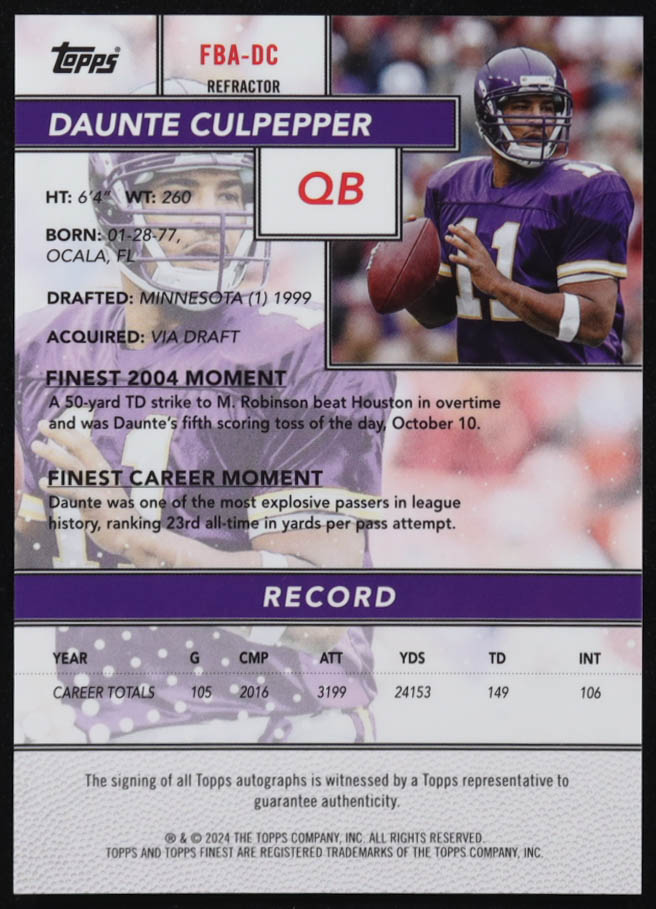 Daunte Culpepper 2024 Finest Flashback Autographs Refractors #FBADC