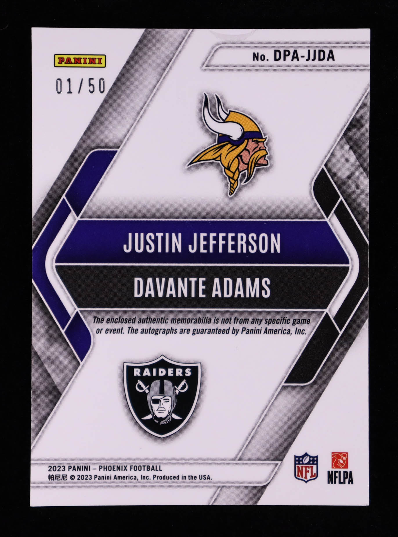 Justin Jefferson / Davante Adams 2023 Panini Phoenix Dual Patch Autographs #1 #01/50