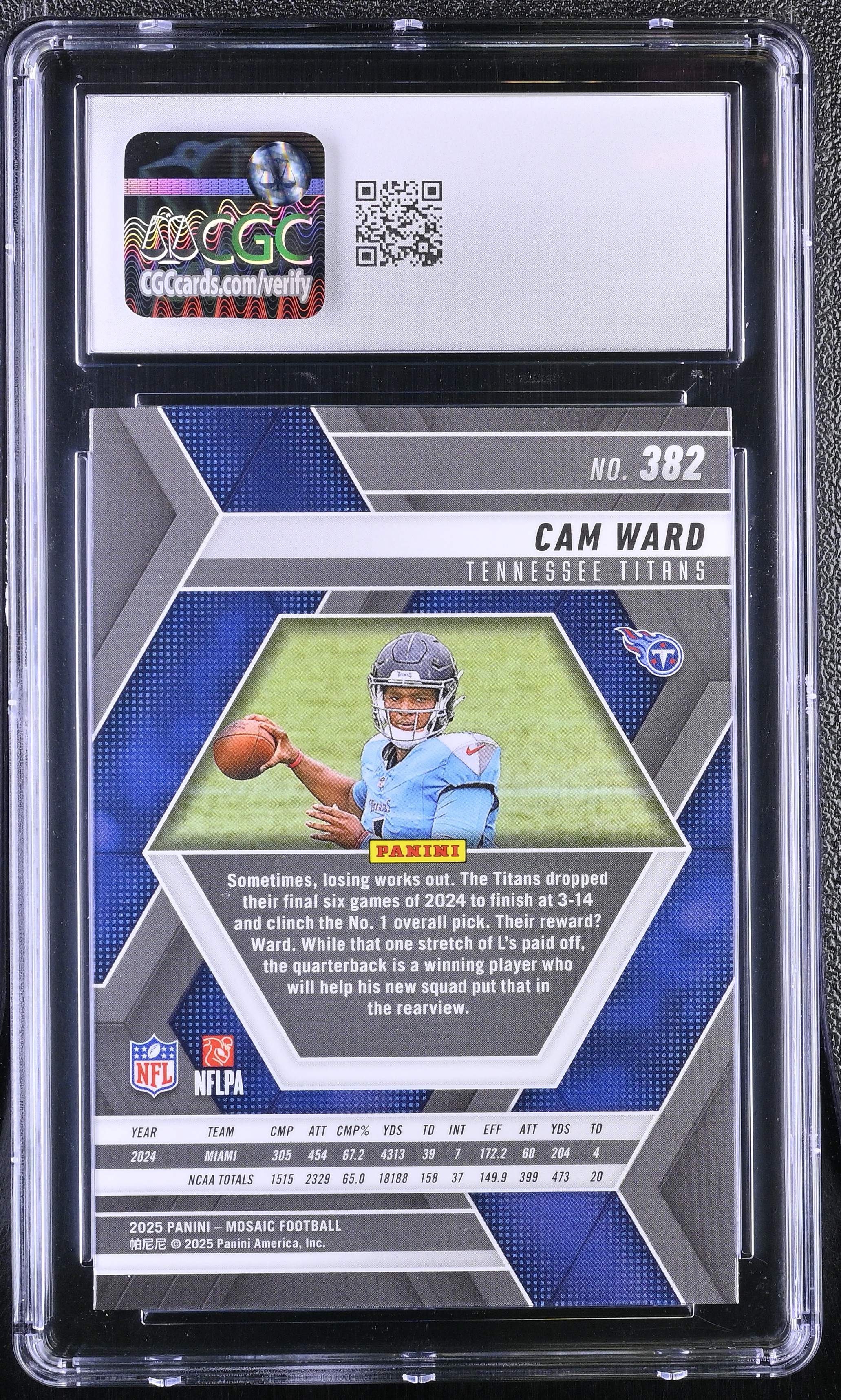 Cam Ward 2025 Panini Mosaic #382 RC (CGC 9)