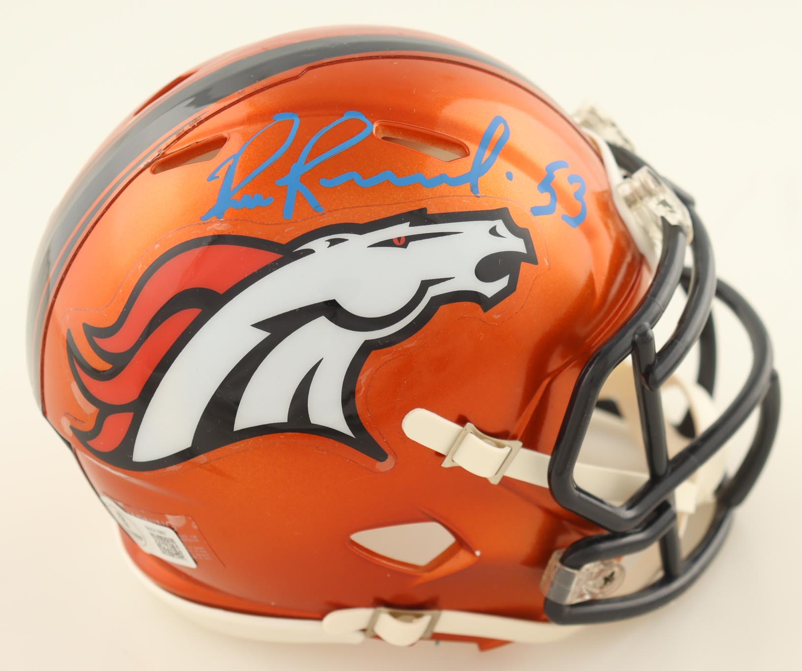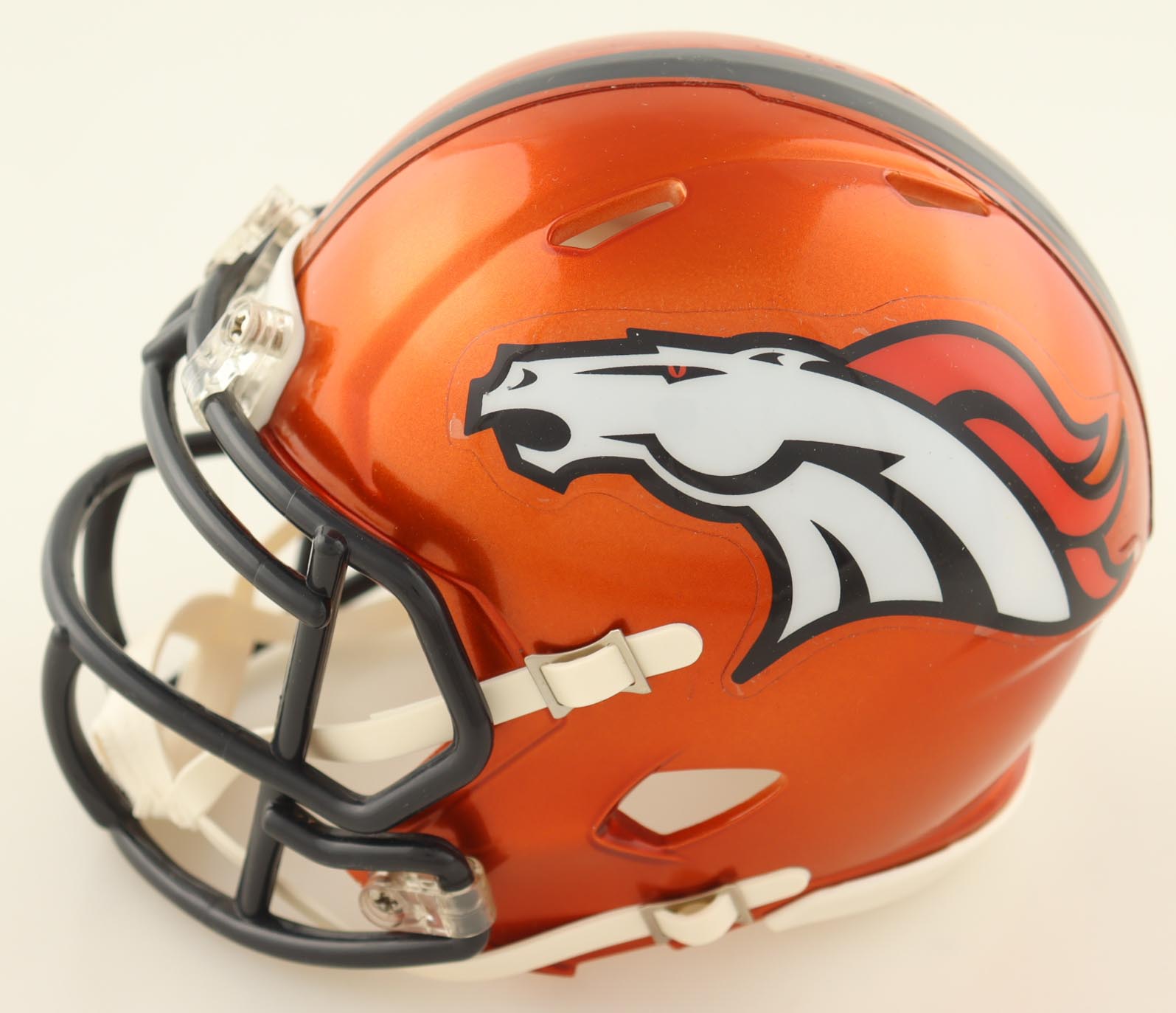 Riddell Denver Broncos Rave Alternate Speed mini helmet. Hand-signed by Bill Romanowski.