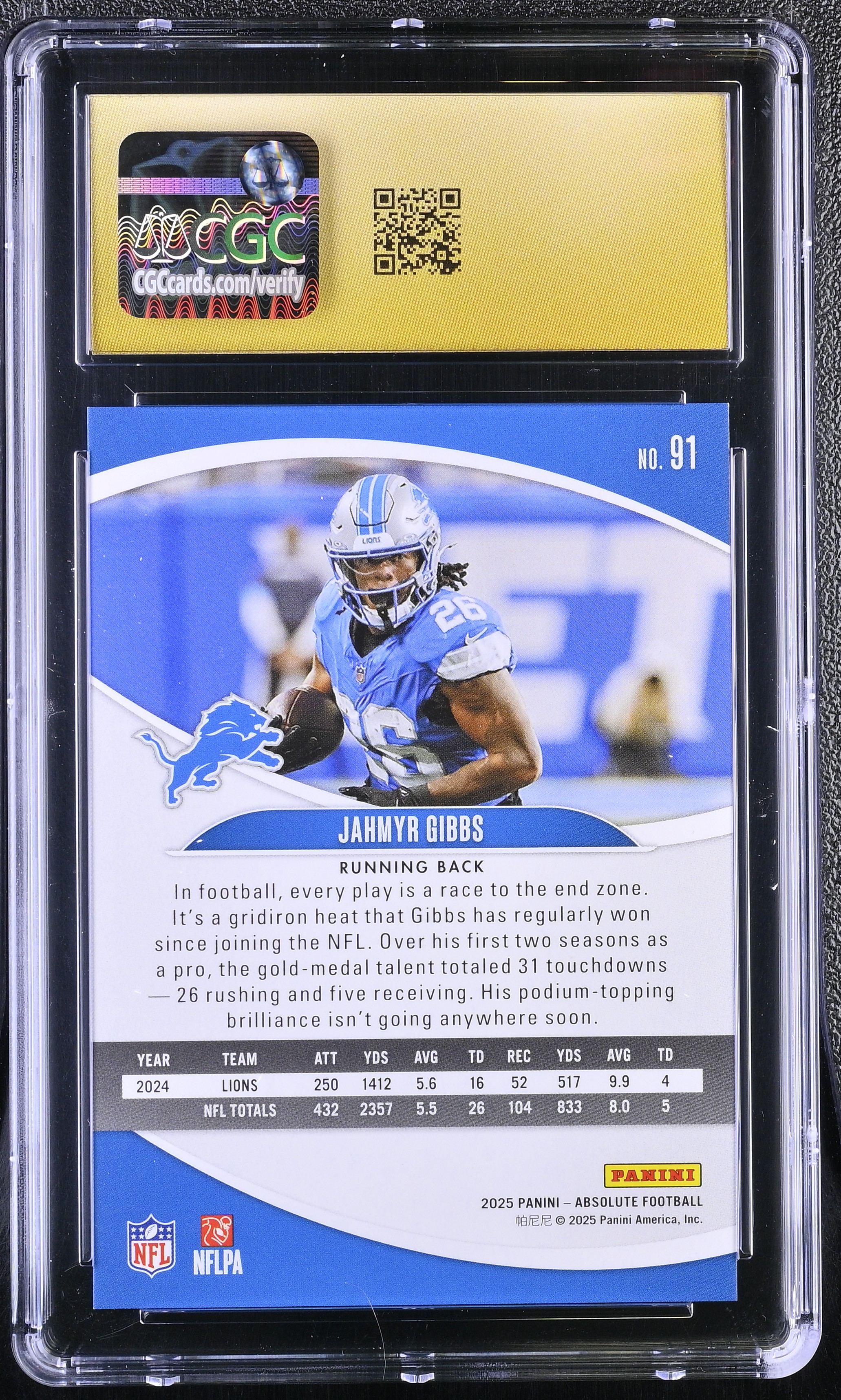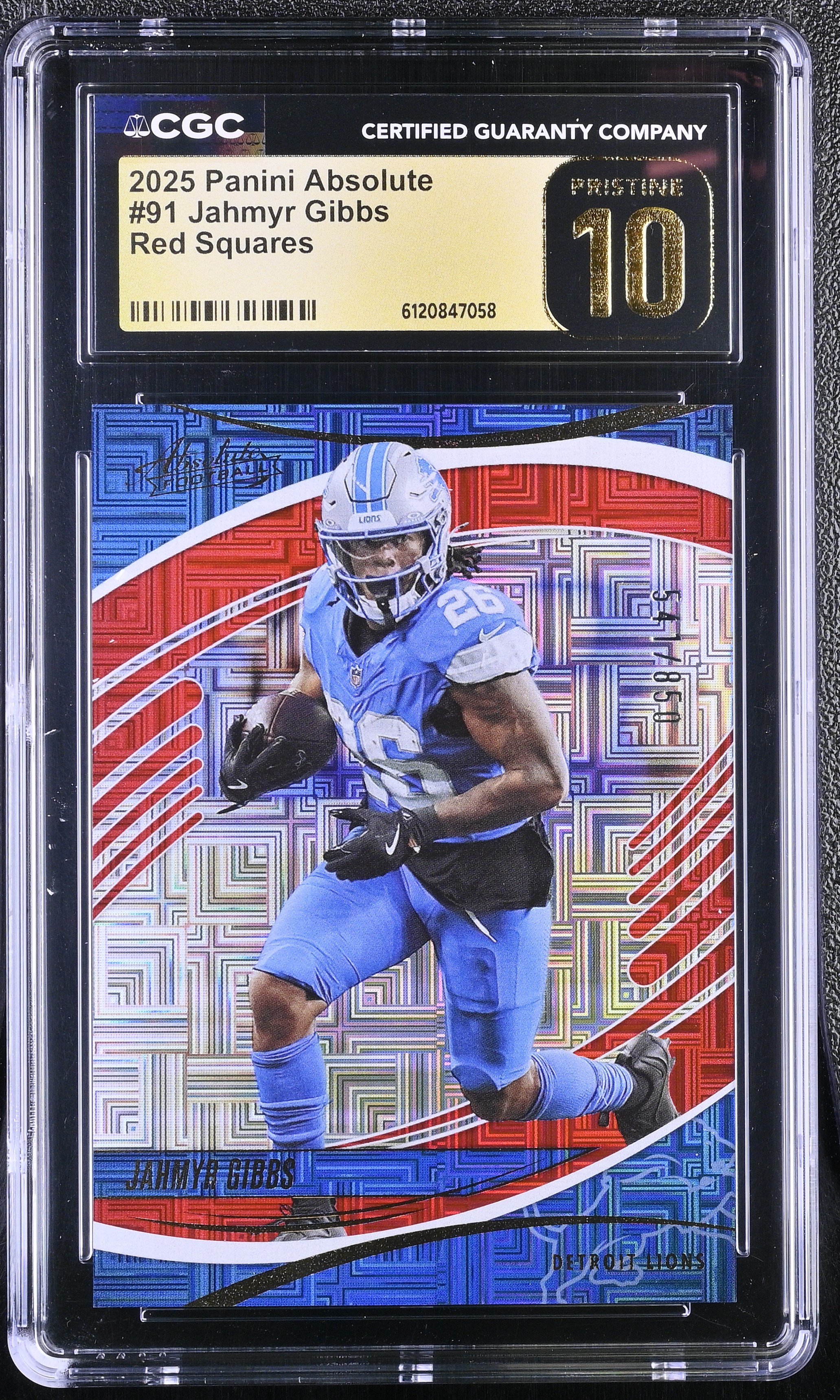 Jahmyr Gibbs 2025 Absolute Red Squares #91 #541/850 (CGC 10 | Black Label)