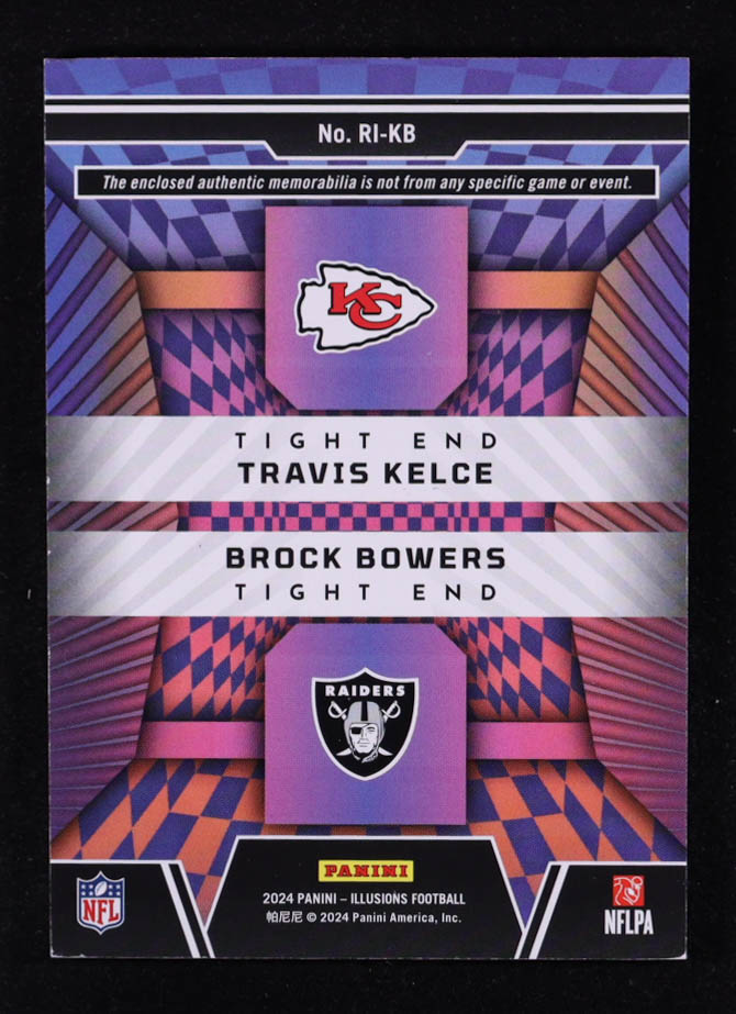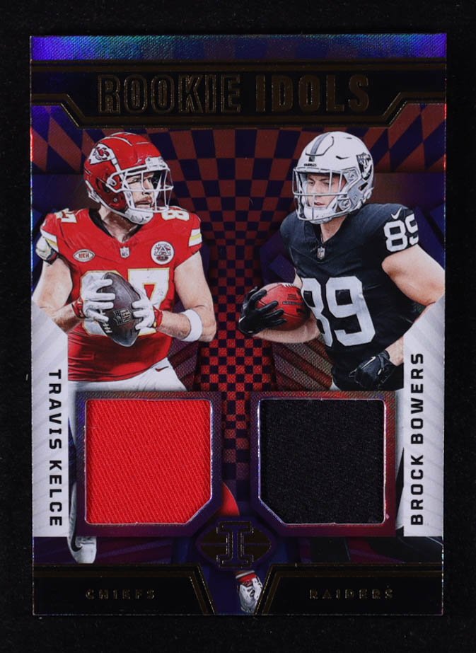 Travis Kelce / Brock Bowers RC 2024 Panini Illusions Rookie Idols Dual Memorabilia #1