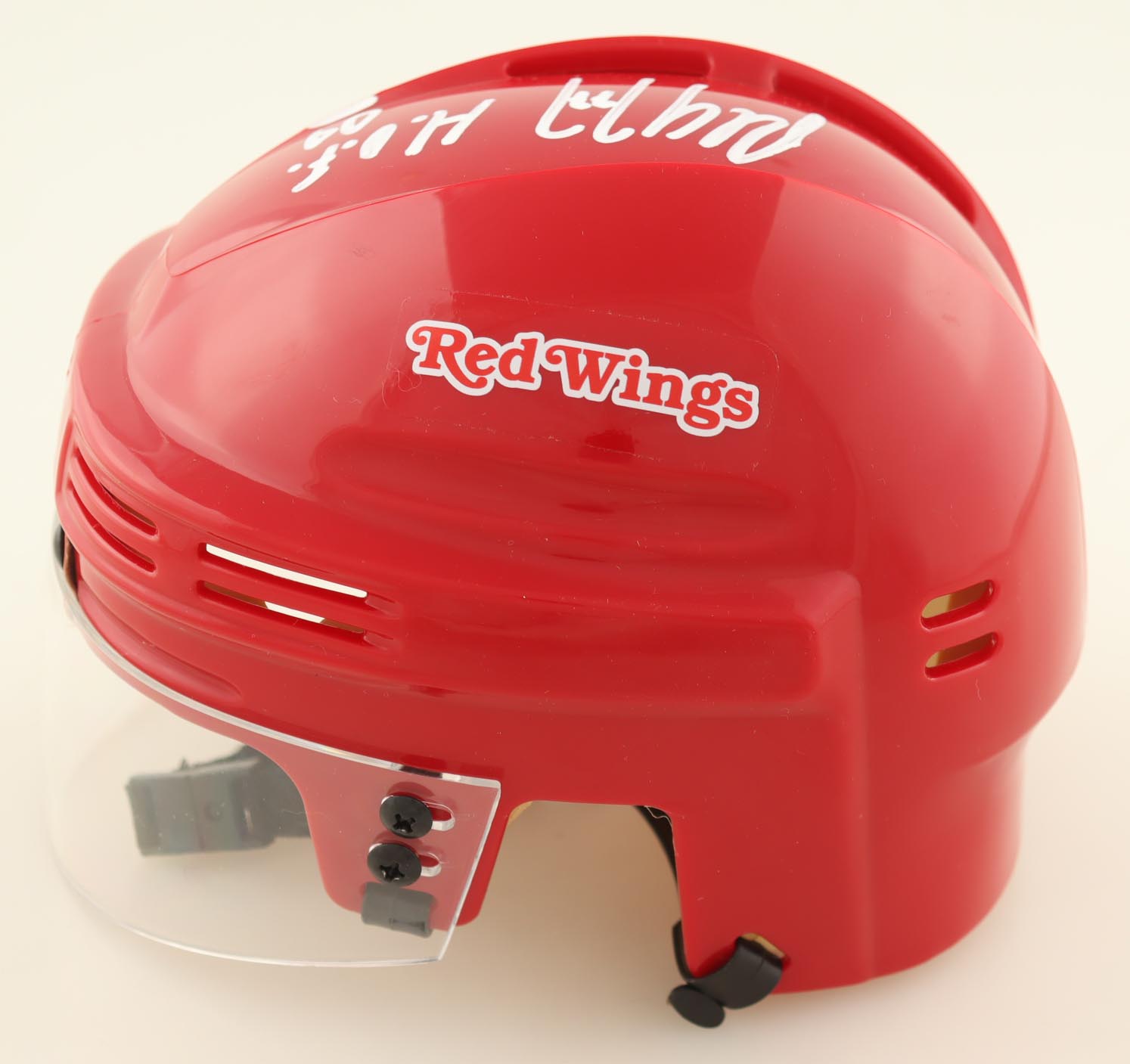 Detroit Red Wings mini helmet has been hand-signed and inscribed by Paul Coffey (HOF).