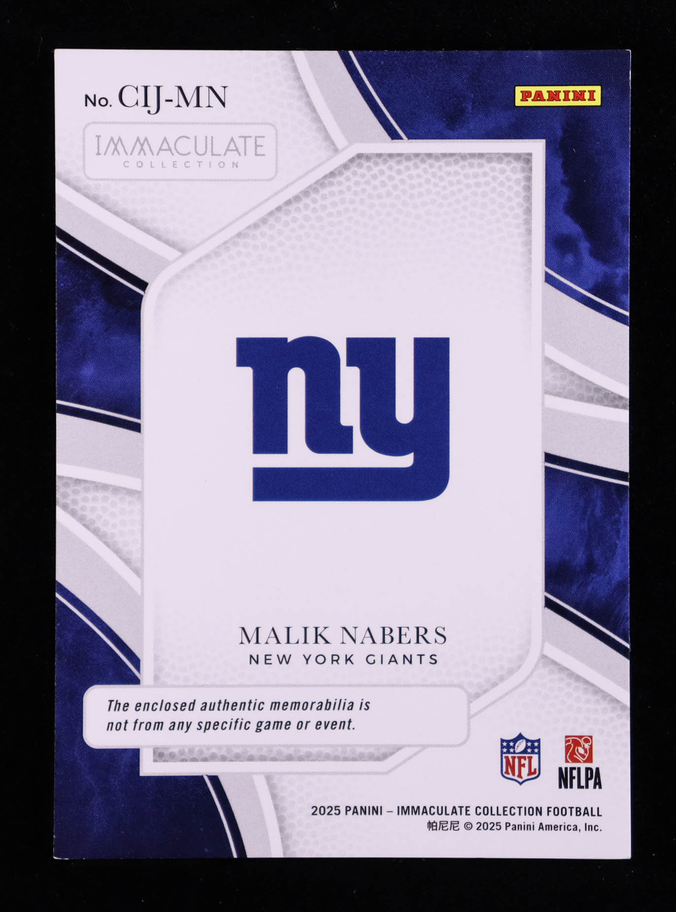 Malik Nabers 2025 Immaculate Collection Clearly Immaculate Jerseys #23 #96/99