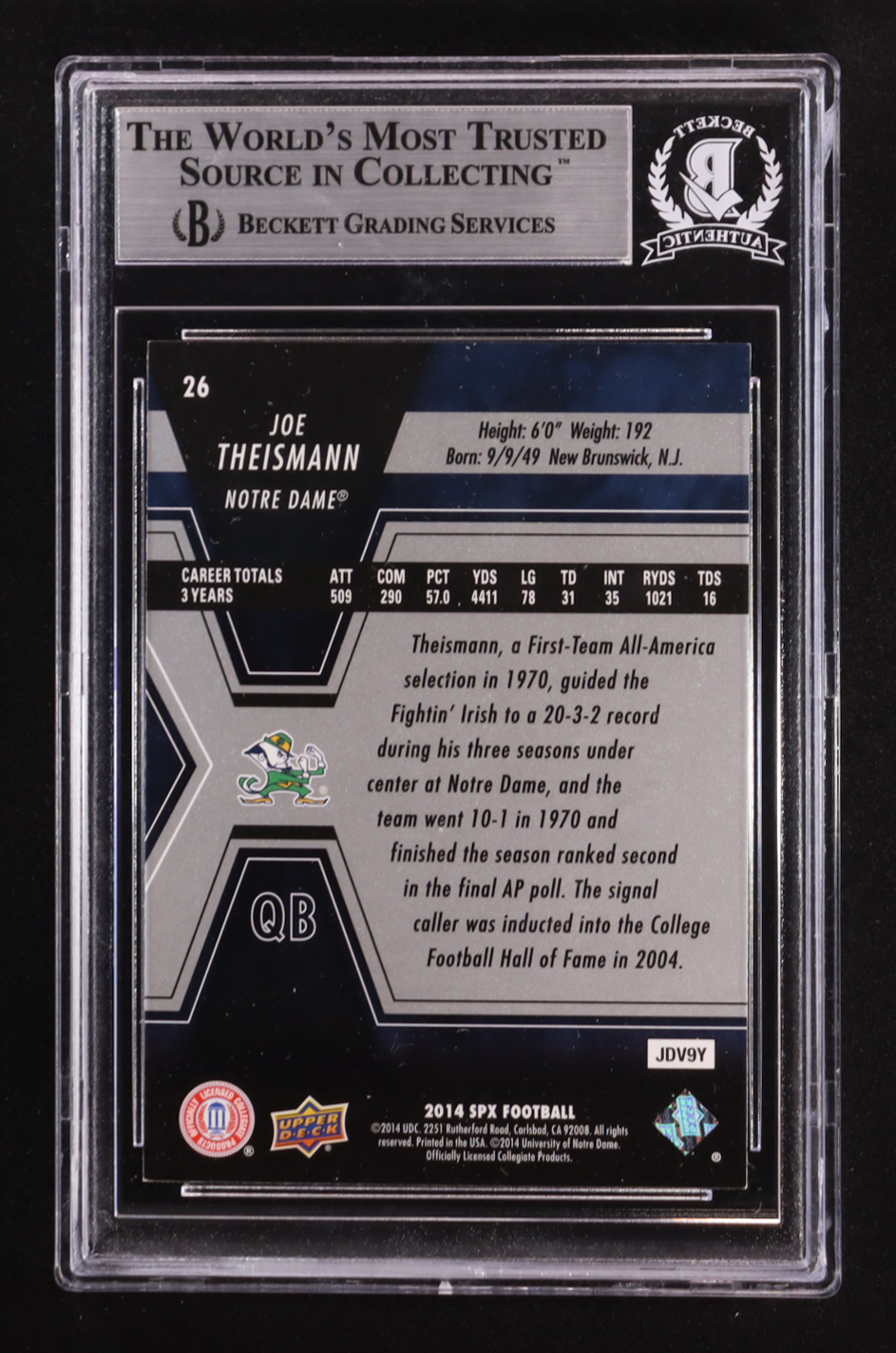 Joe Theismann Signed 2014 SPx #26 (BGS)