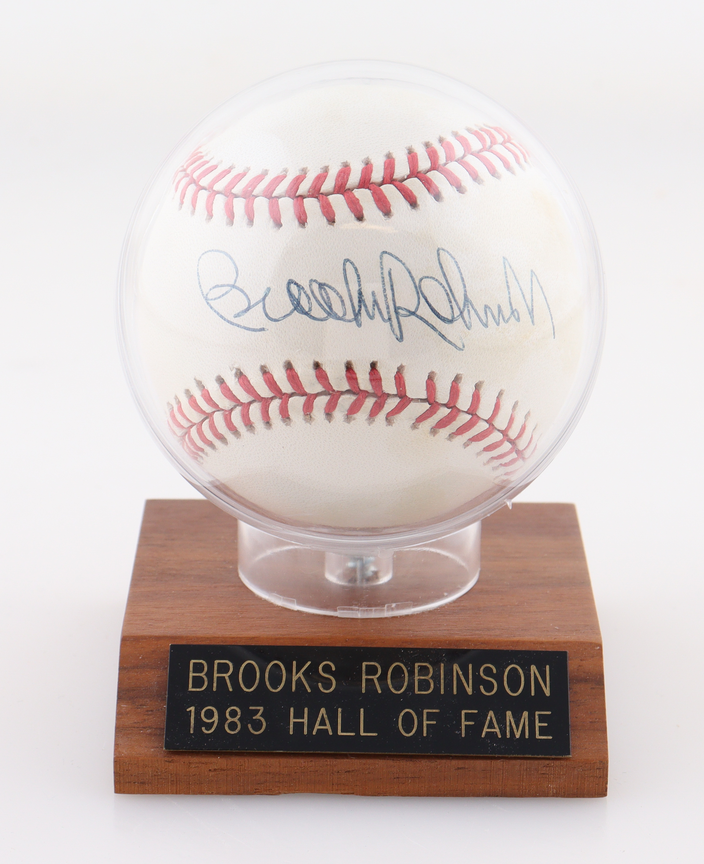 Rawlings Official American League baseball has been hand-signed by Brooks Robinson (D. 2023, Baltimore Orioles, HOF). Please see photos for more details regarding the condition of the item. Note that the display case is included in the listing as shown above.