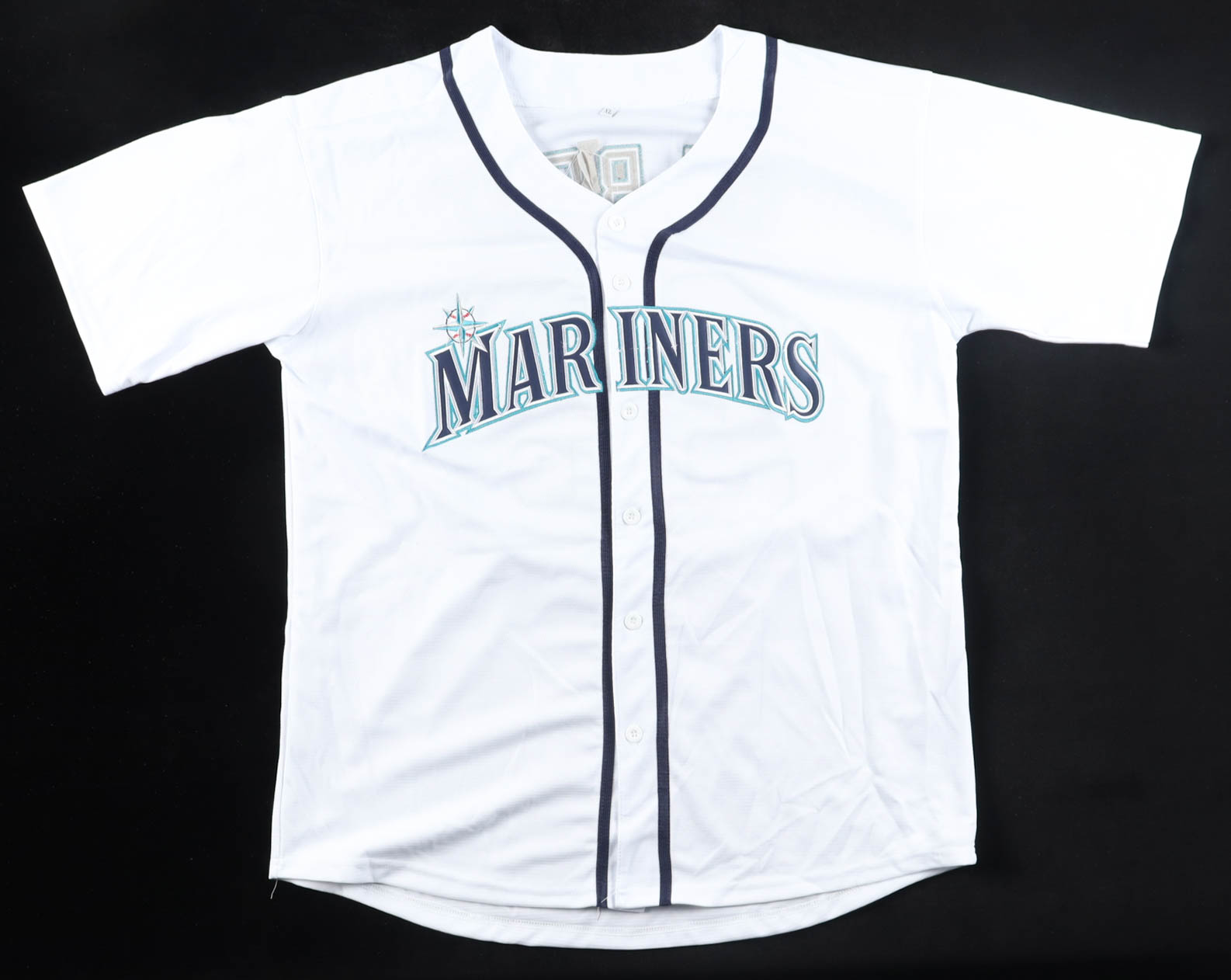 Custom jersey with everything sewn on, size XL. Hand-signed by Logan Gilbert.