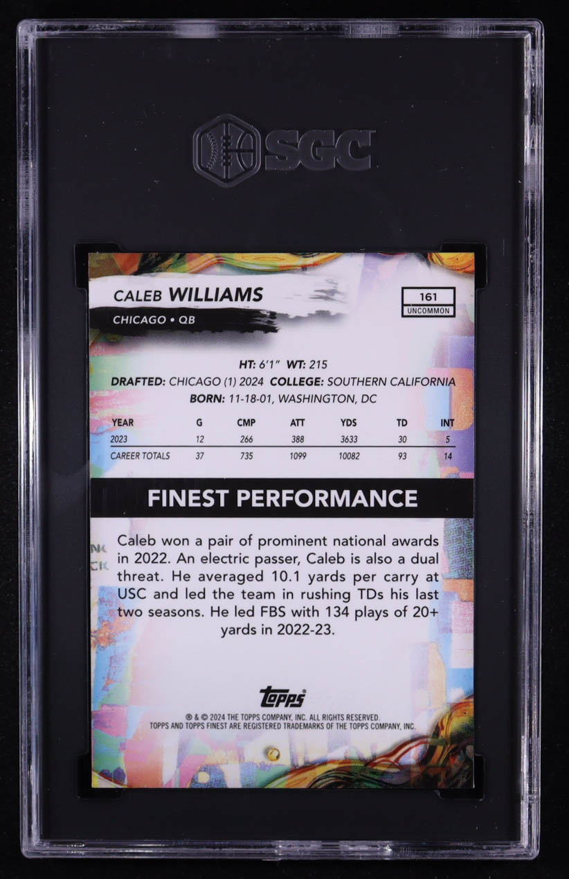 Caleb Williams 2024 Finest Sky Blue Refractors #161 RC #089/250 (SGC 10)