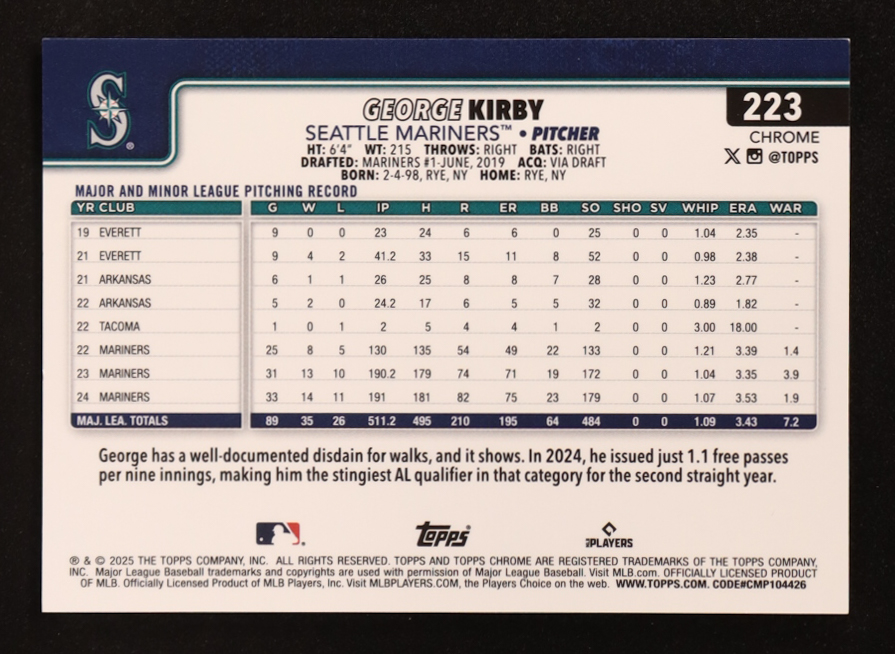 George Kirby 2025 Topps Chrome Logofractor Red Refractors #223 #5/5