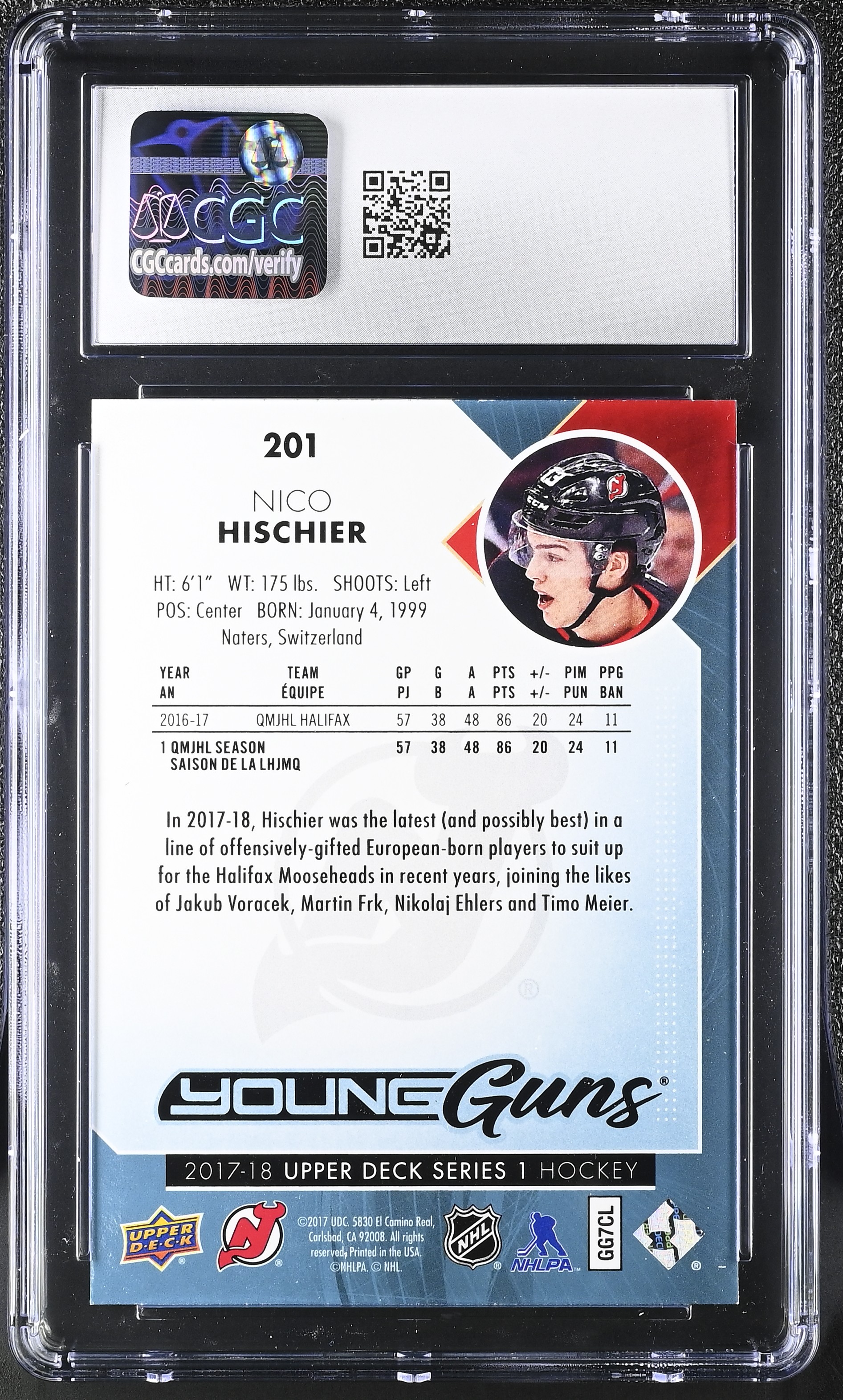 Nico Hischier 2017-18 Upper Deck Young Guns #201 RC (CGC 10)