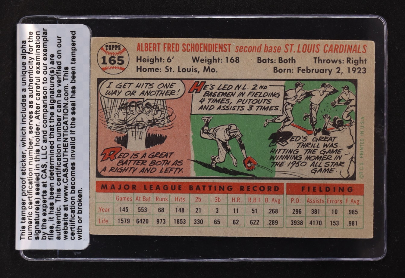 Card has been hand-signed by Red Schoendienst. Card has been graded (CAS) Authentic. Please see photos for more details regarding the condition of the card (St. Louis Cardinals).