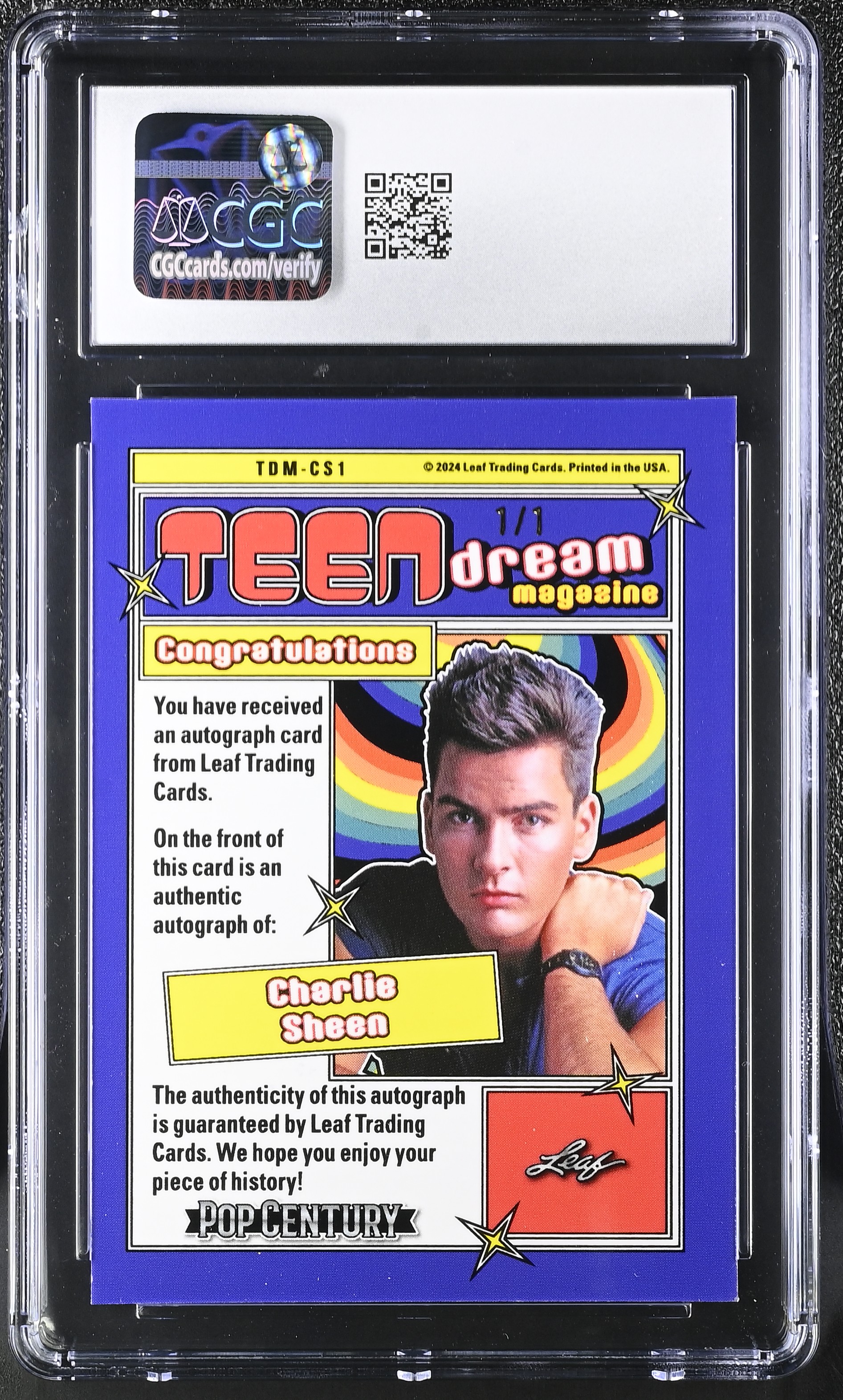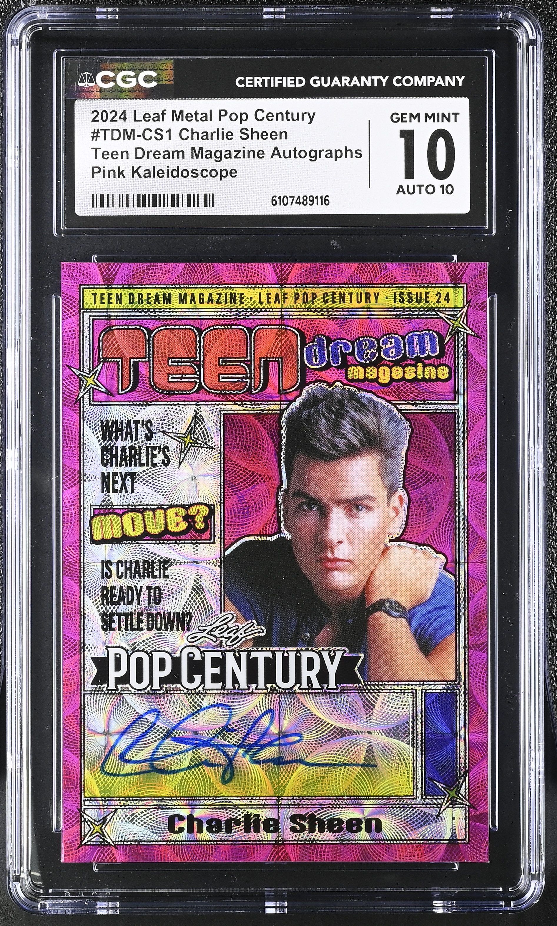 Charlie Sheen 2024 Metal Pop Century Teen Dream Magazine Autographs Pink Kaleidoscope #TDMCS1 #1/1 (CGC 10 | Autograph Grade CGC 10)