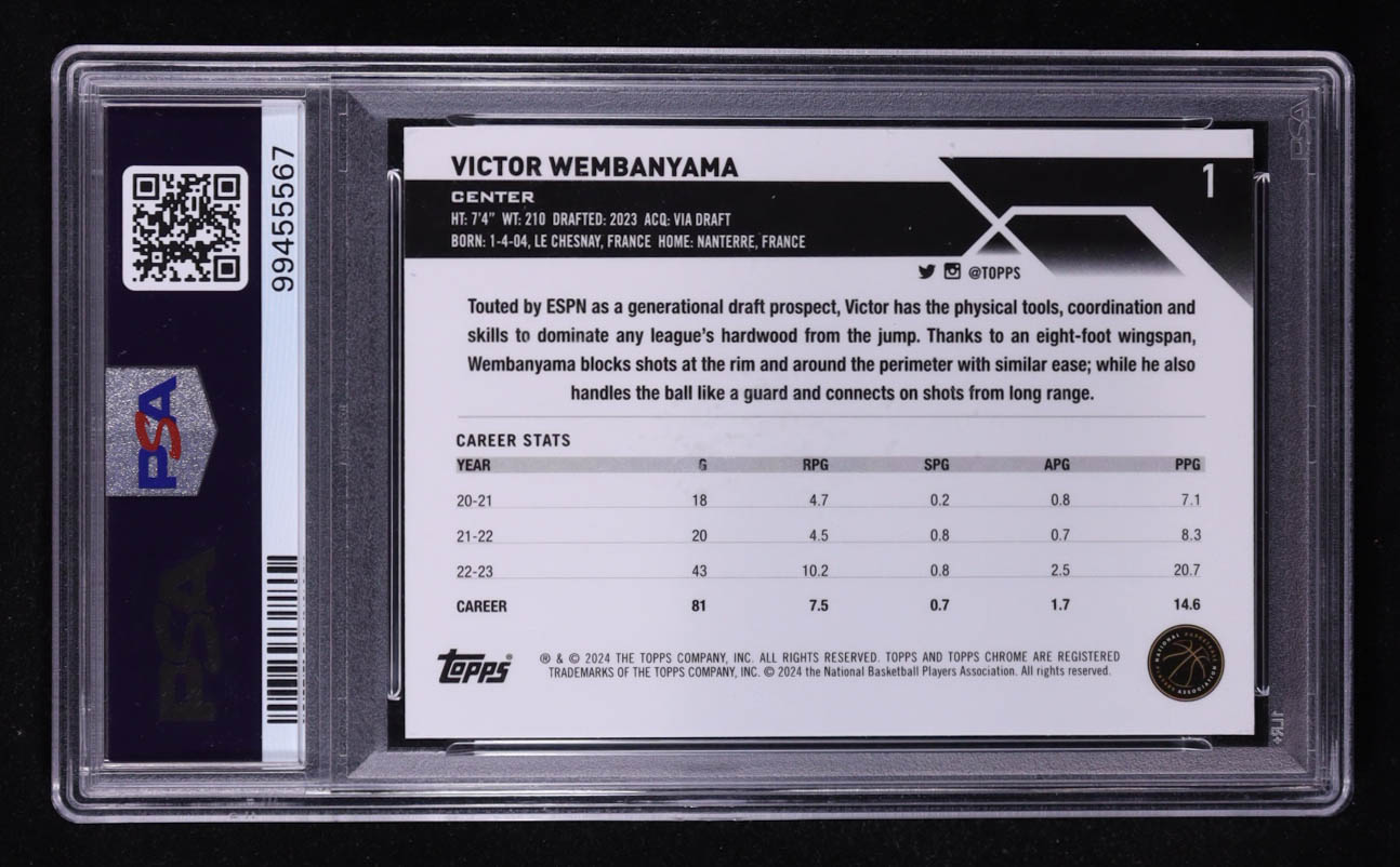 Victor Wembanyama 2023-24 Topps Chrome Sapphire #1 RC (PSA 10)