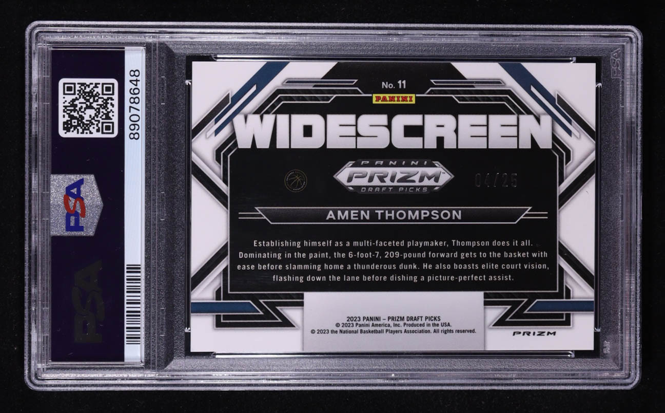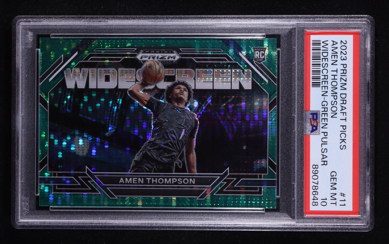 Amen Thompson 2023-24 Panini Prizm Draft Picks Widescreen Prizms Green Pulsar #11 #04/25 RC (PSA 10)