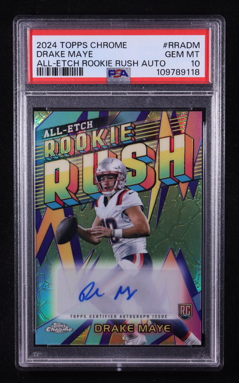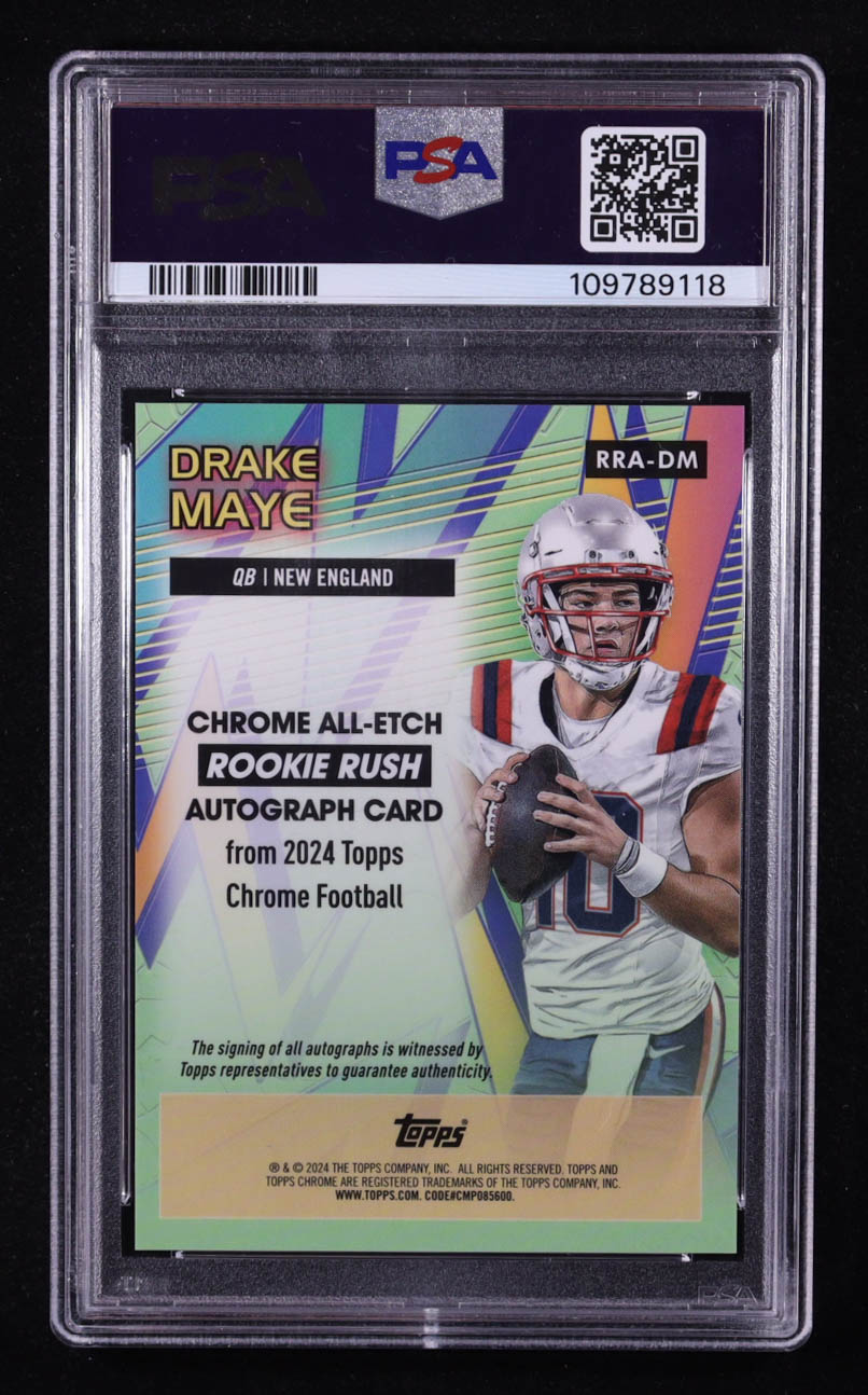 Drake Maye 2024 Topps Chrome All Etch Rookie Rush Autographs #RRADM RC (PSA 10)