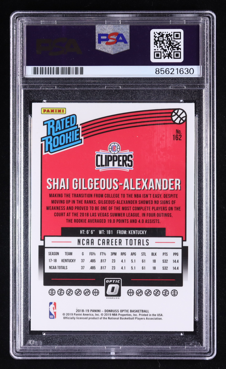 Shai Gilgeous-Alexander Signed 2018-19 Donruss Optic #162 RC (PSA)