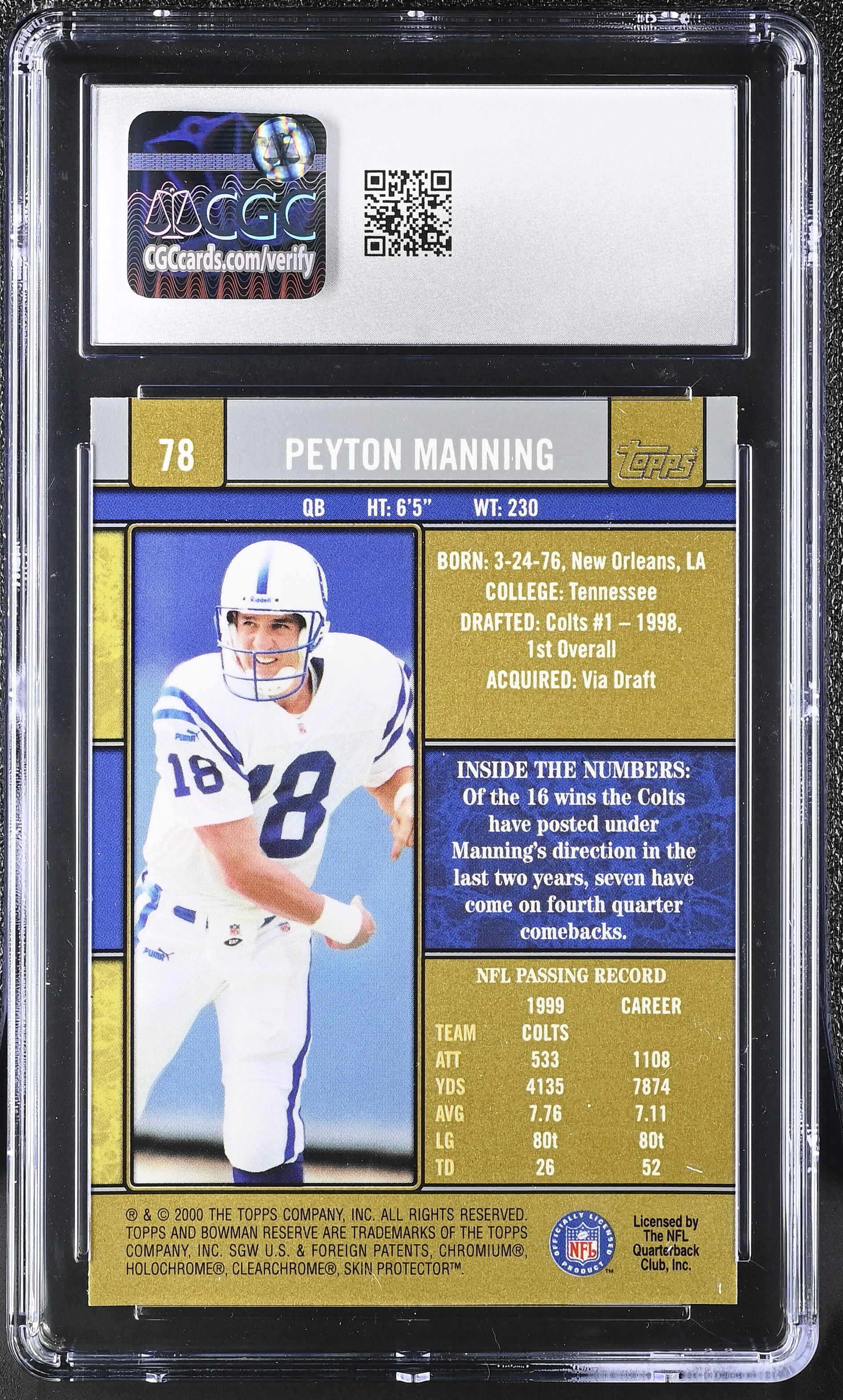 Peyton Manning 2000 Bowman Reserve #78 (CGC 9.5)