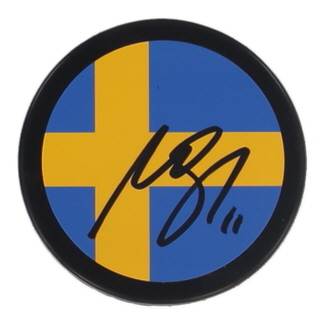 Mikael Backlund Signed Team Sweden Logo Hockey Puck (JSA)