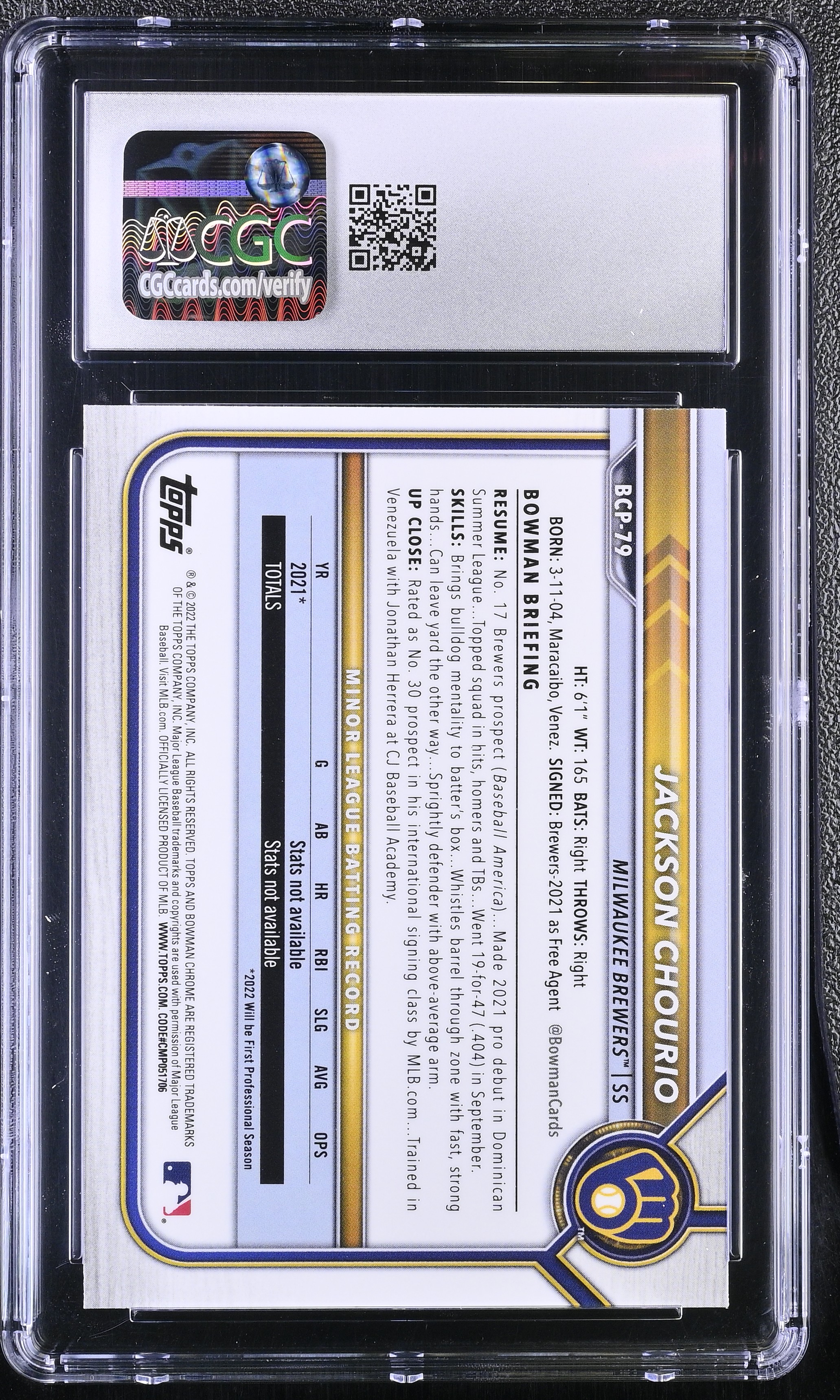 Jackson Chourio 2022 Bowman Chrome Prospects #BCP79 RC (CGC 10)