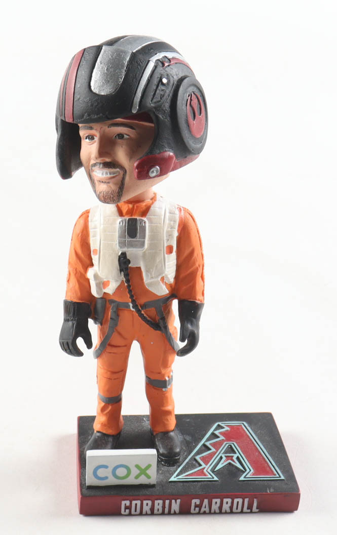 Corbin Carroll Arizona Diamondbacks Star Wars Rebel Pilot ceramic bobble head figure measures approximately 7" tall. Please note, the item is unsigned, see photos for more details.